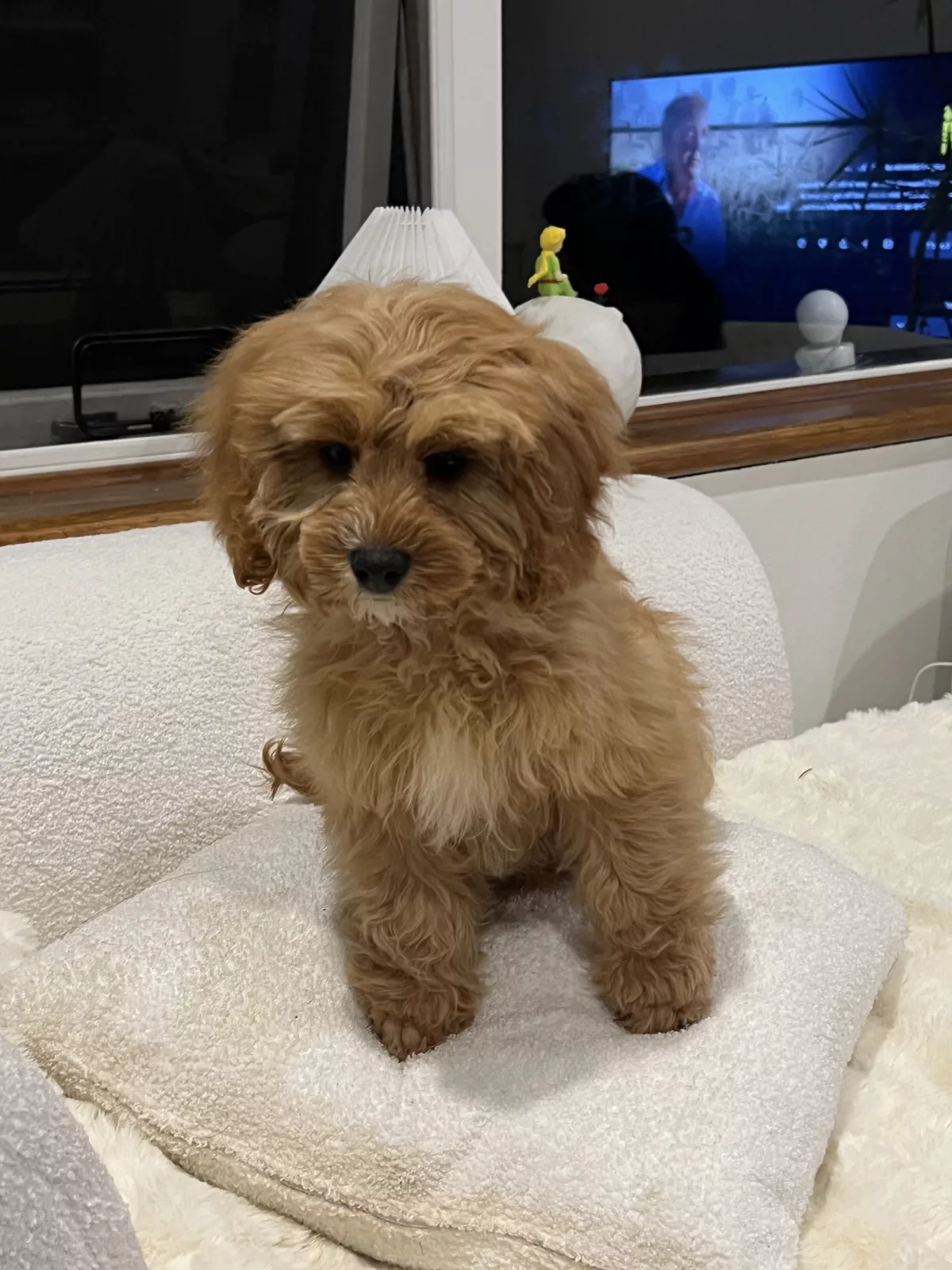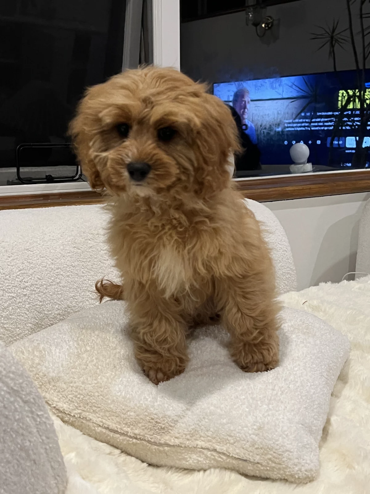 Our puppies are well-socialised, healthy, and ready to bring joy to a new family. Cavoodles are known for their affectionate nature, intelligence, and low-shedding coats – ideal for families, singles, or those with allergies.