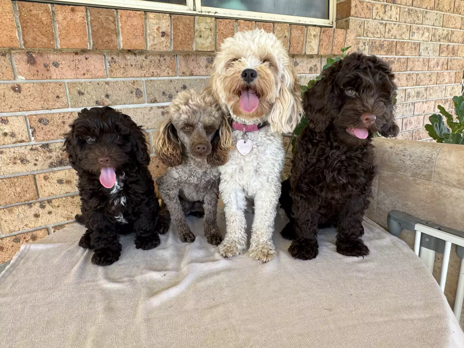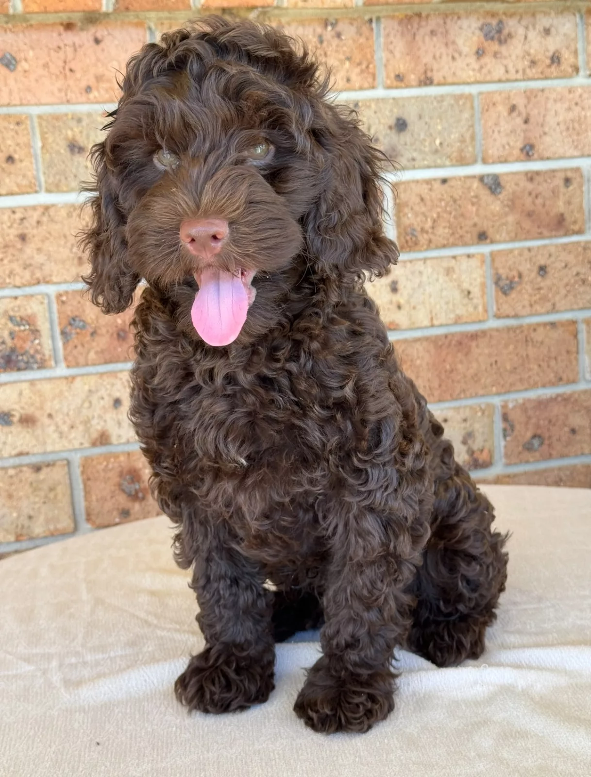 Choco is a 7 months old Cavoodle x Poodle , very playful loves running around back yard with his mum and brother, is a real chocolate colour ( unlike his brother crossed between black and chocolate ) very friendly , one pic showing him with mum, dad & brother