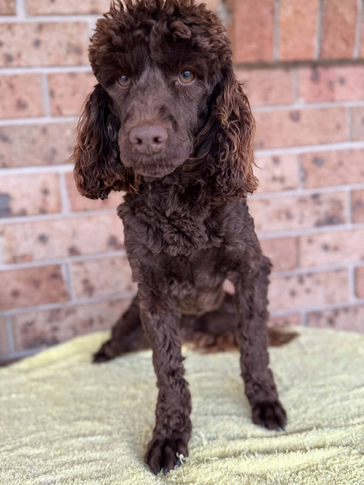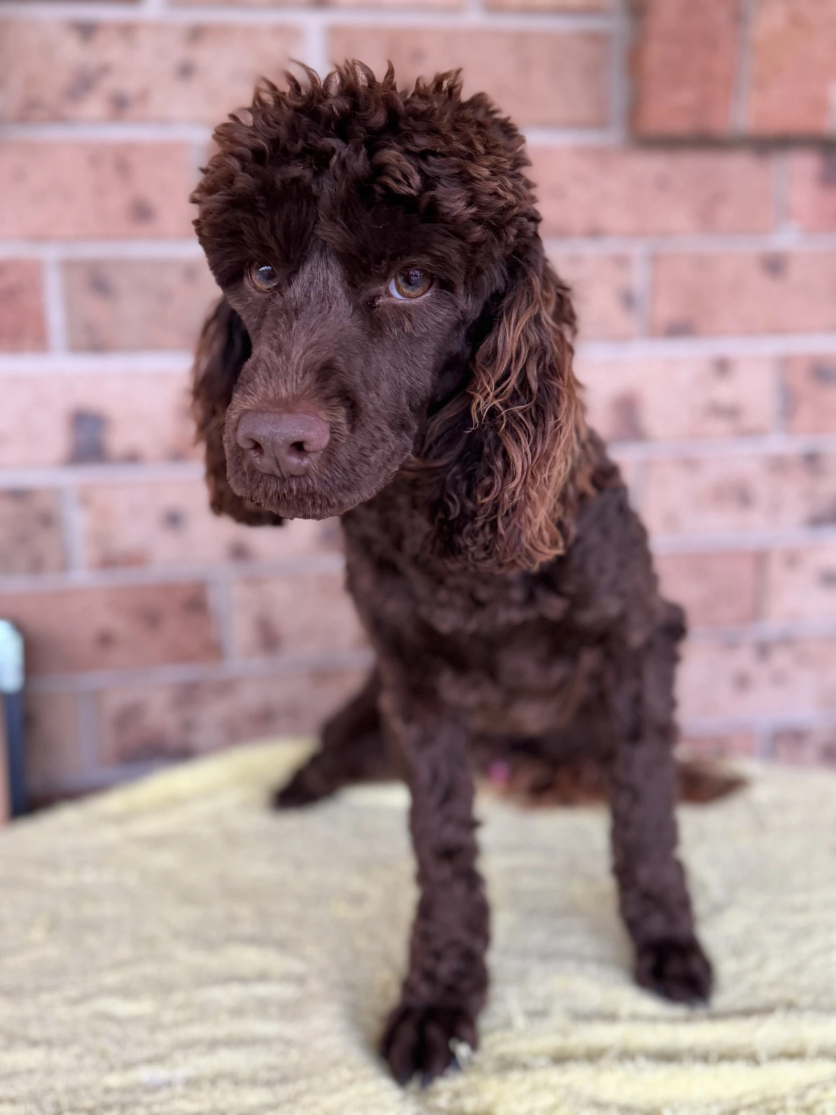 Cavoodle x Poodle male, born 27/9/2024, looking for his forever home. This gorgeous boy is a true chocolate colour with a beautiful, friendly nature. He is very playful and loves running around the backyard and paddock with his mum and brother.