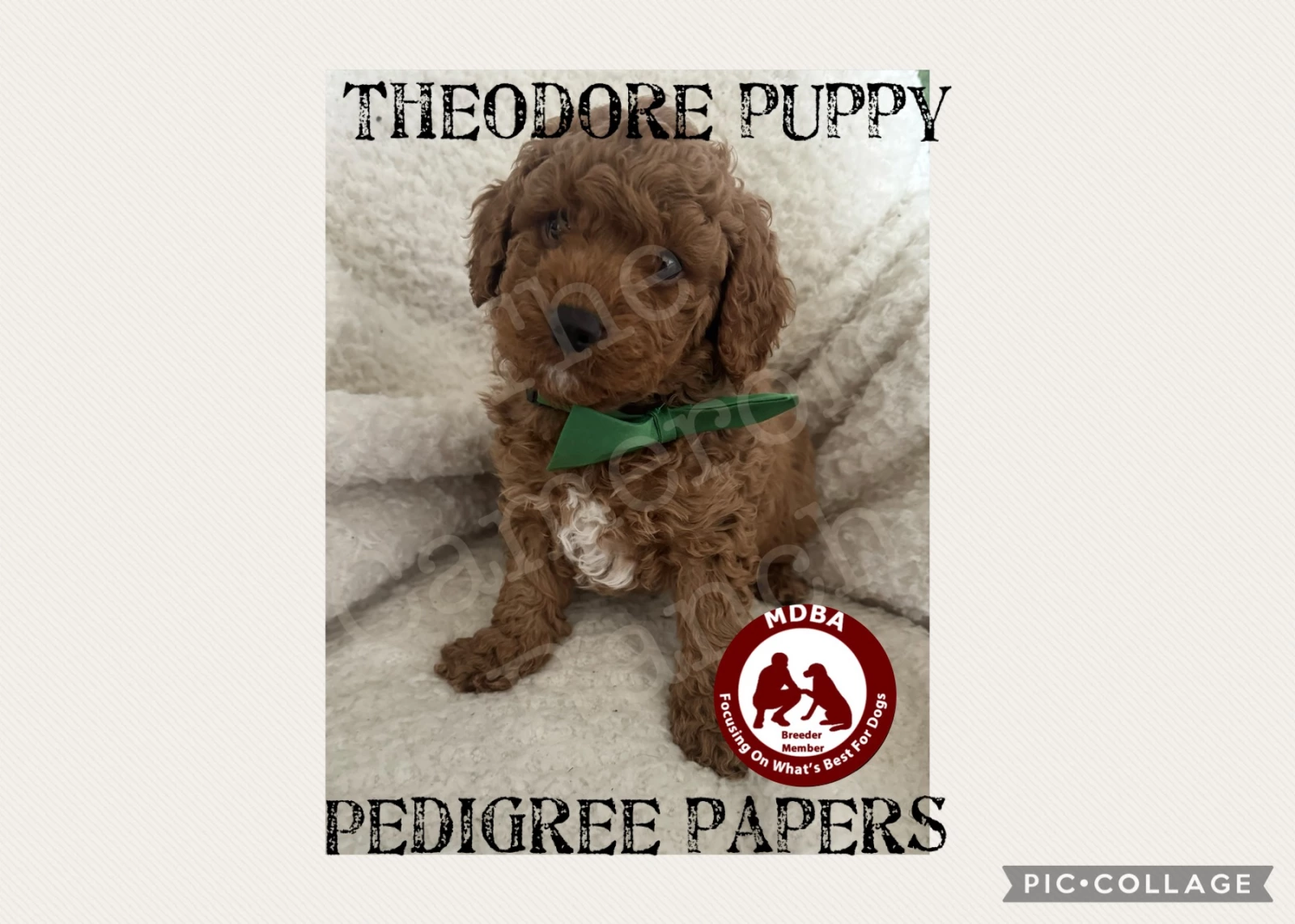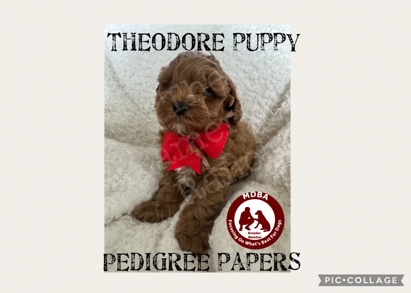 Registered pedigree papered Theodores (Breed in development Toy Cavoodles registered with Master dog breeders and associates (MDBA). As they come with pedigree papers and full registration you can be sure you are getting the breed / looks / coat / health and temperament of a genuine Theodore from am audited registered ethical breeder