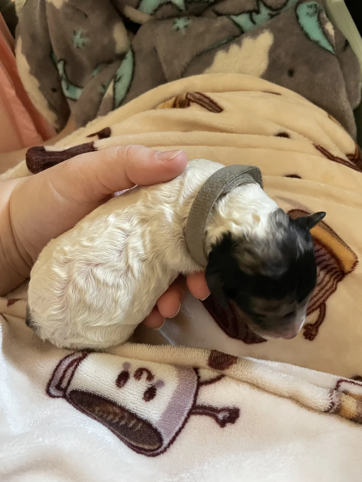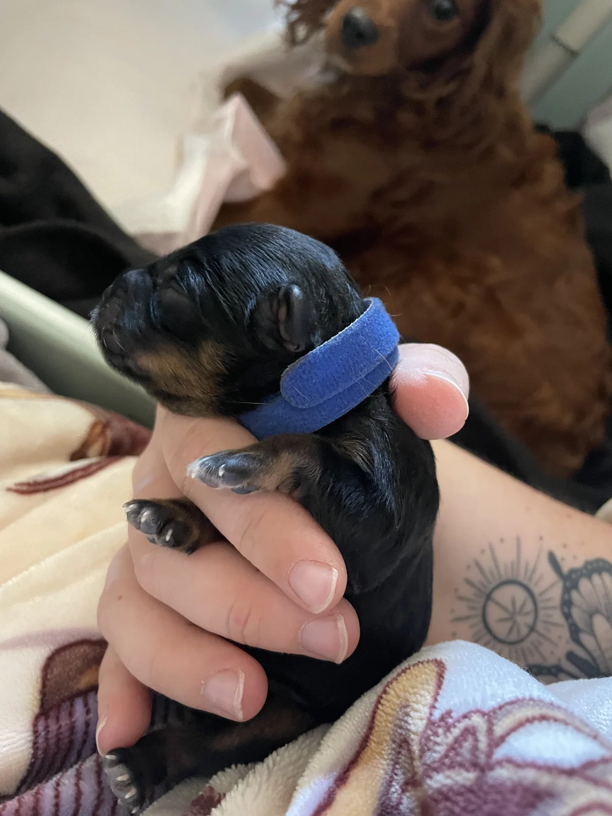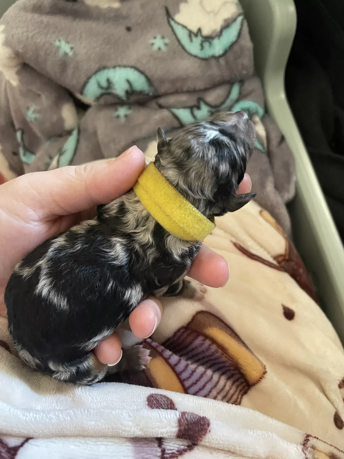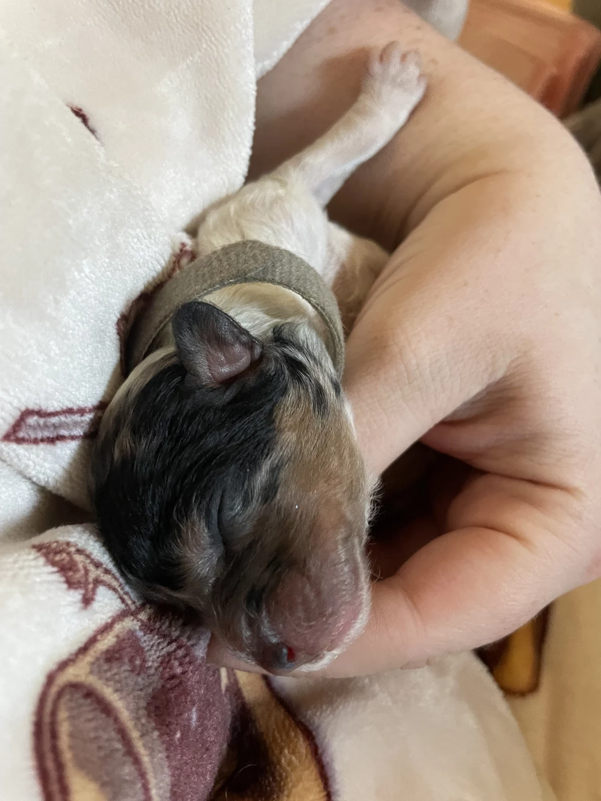 There are 5 girls and 1 boy available (the tan collar is the boy). Photos of the parents are at the end β Mum is a ruby Cavoodle and Dad is a black merle mini Poodle.