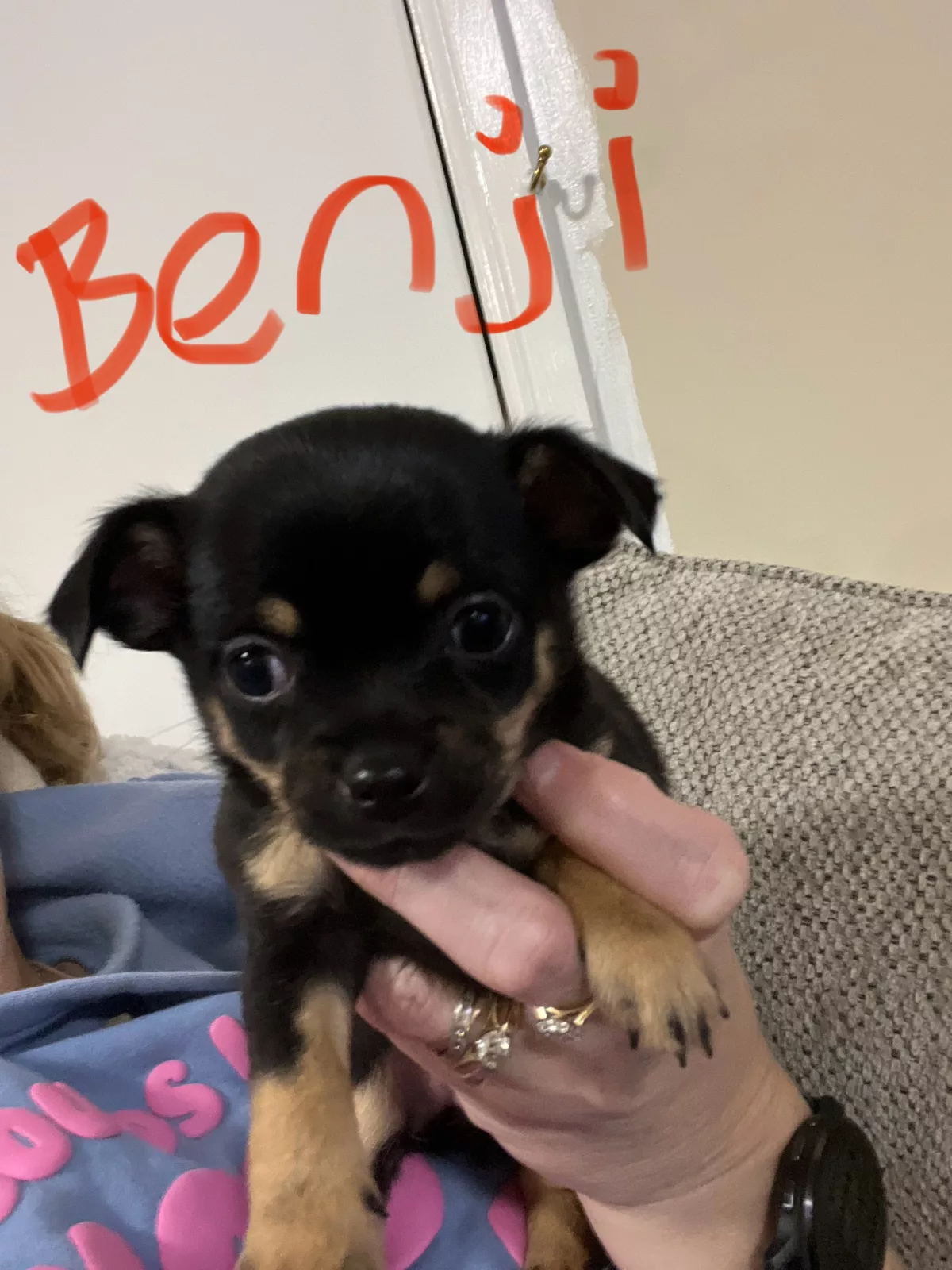 2 stunning tri colour MALE purebreds chihuahua puppies available ready for new homes August 1st. We have temporarily named them Benji and Bruce for ease of identifying them.