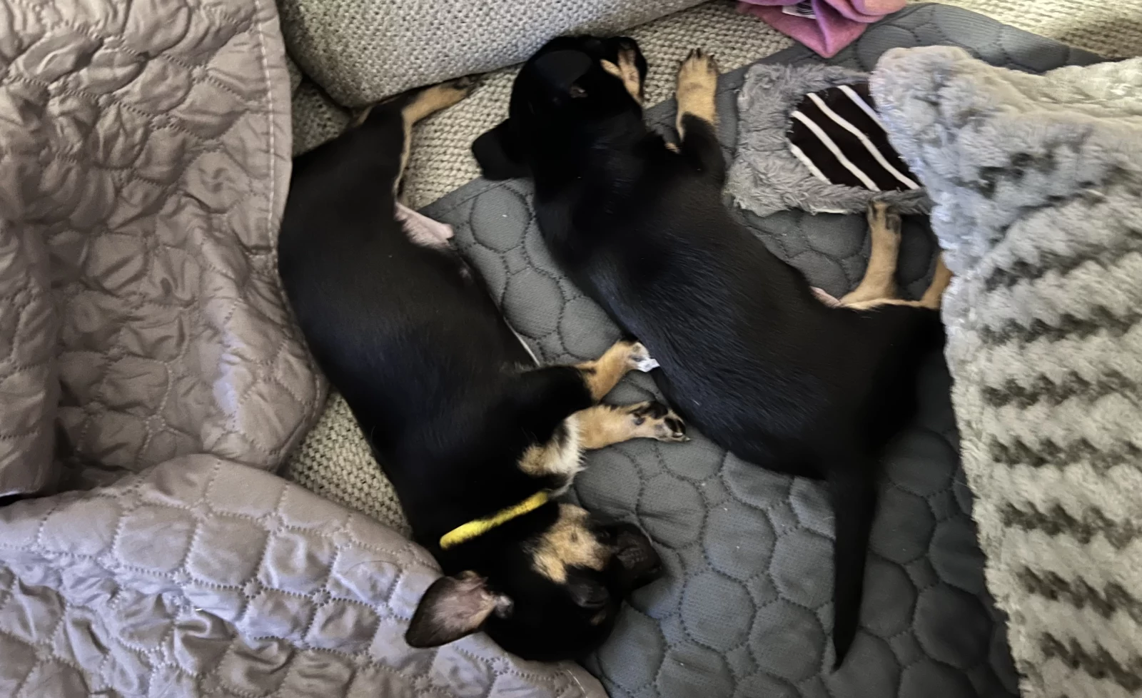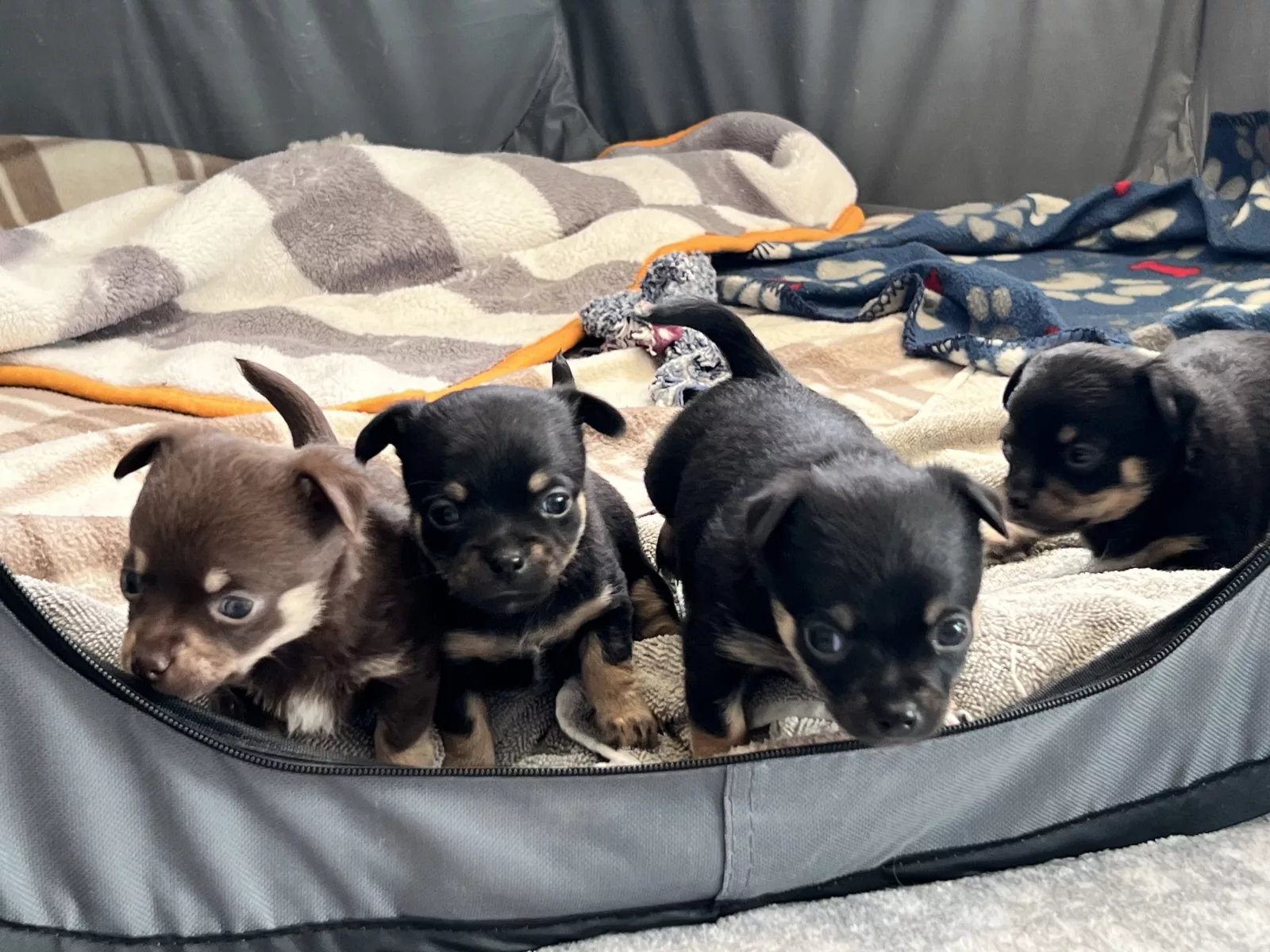 Puppies will come home with a puppy pack which includes some basic items such as a dog bed, blanket, bowl, pee pads, a weeks worth of kibble and wet food and some toys for your new companion to help them settle in.