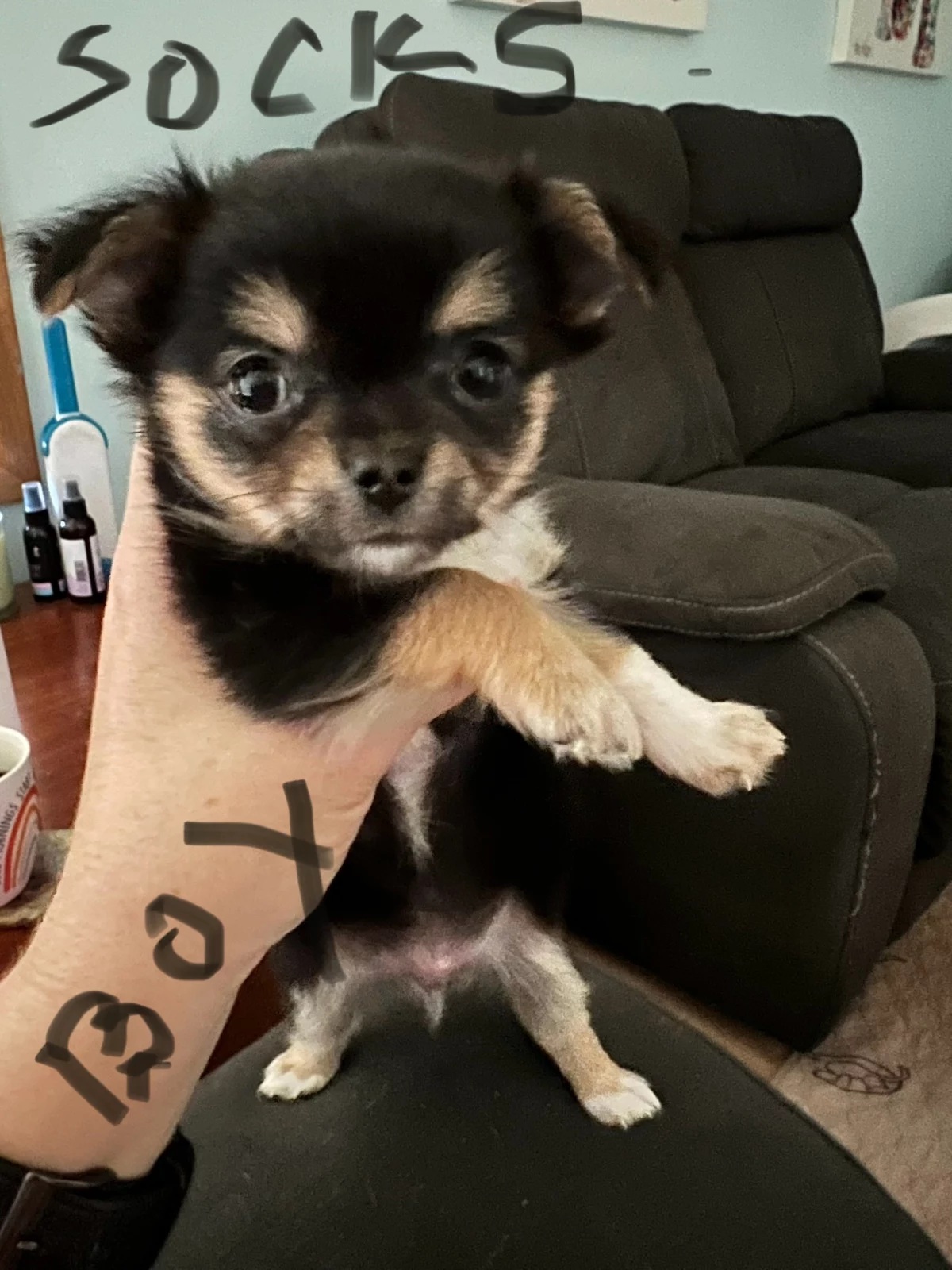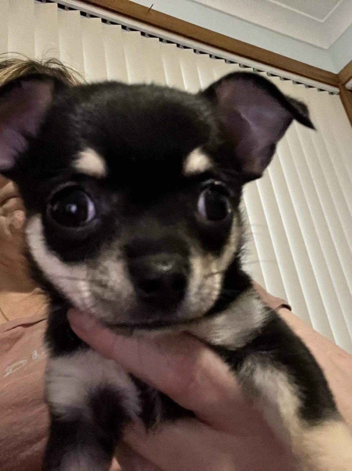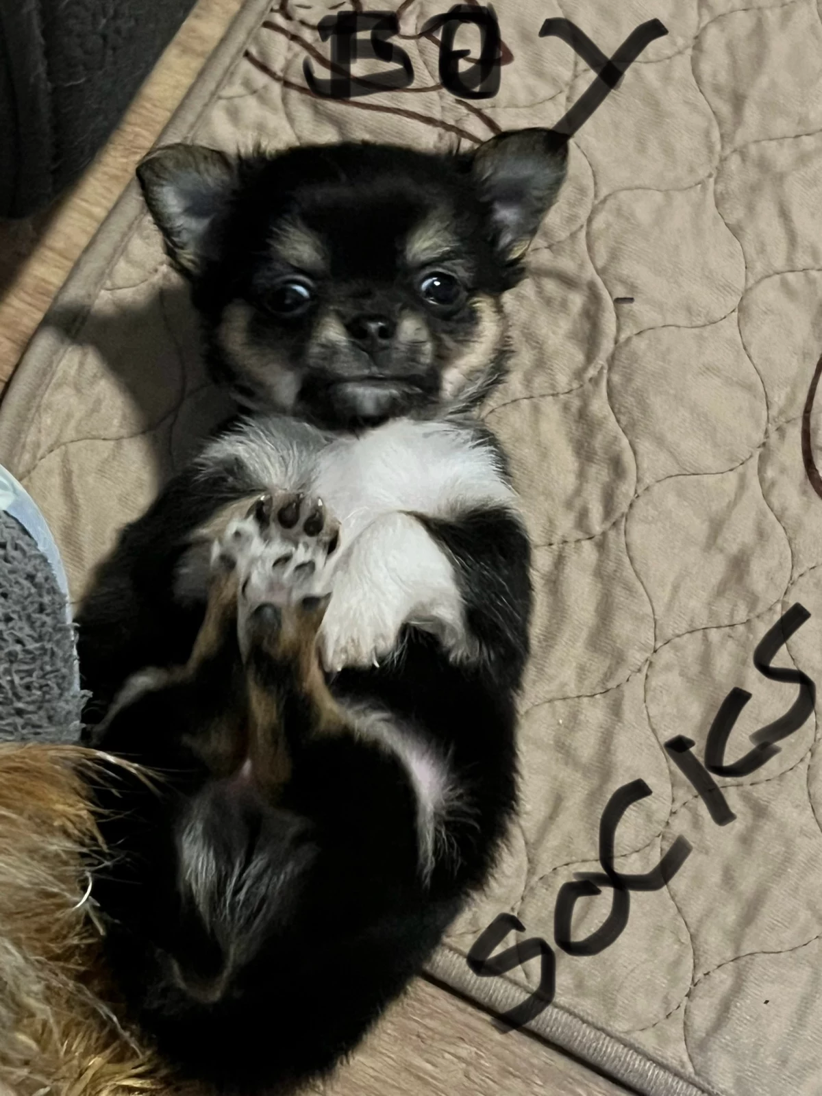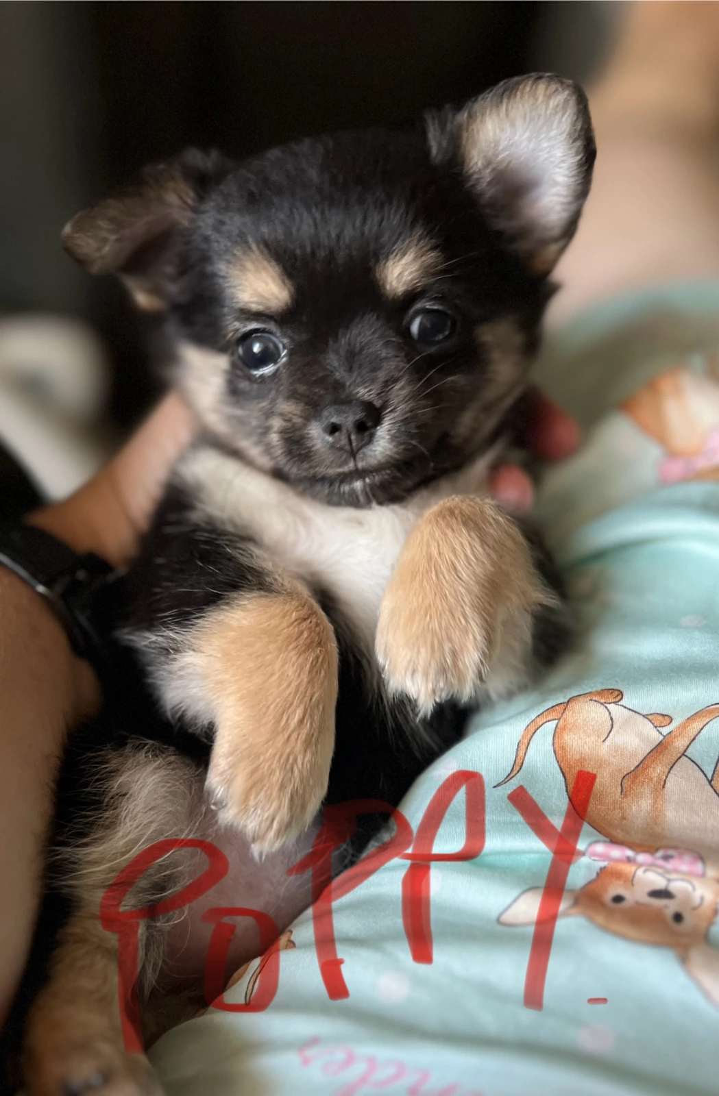 POPPY; Black white and tan. Super affectionate real fluff ball. long haired very cuddly. Loves neck cuddles and sleeping on your chest. Seeks out love and attention.
