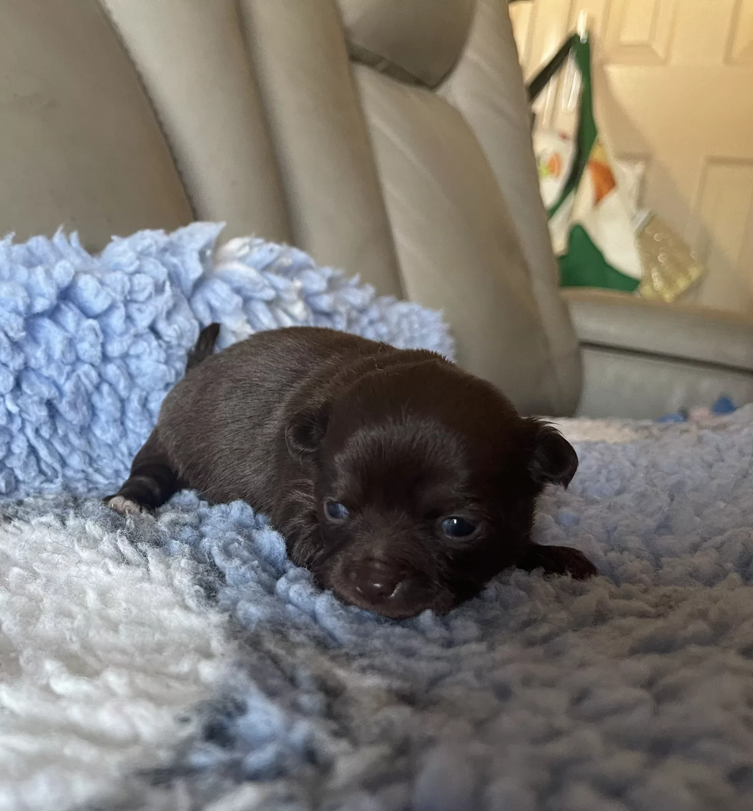 These stunning long coat dark chocolate Chihuahua puppies have been lovingly raised in a clean, indoor home environment with constant care and attention. With their rich colouring, soft coats, and affectionate temperaments, they make ideal companions for families or individuals seeking a loyal and playful pet. The puppies are socialised with household sounds and gentle handling from an early age to ensure confident, well-adjusted personalities.