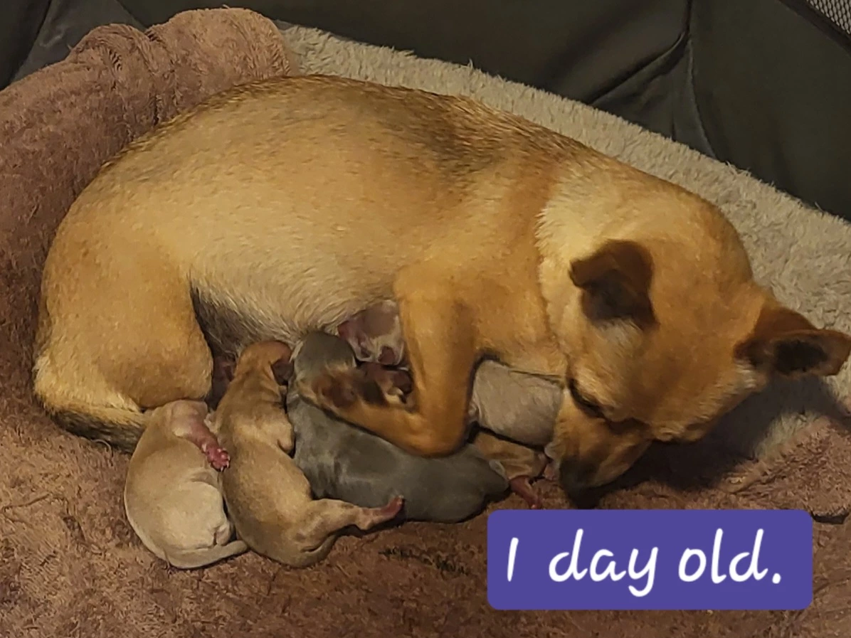 Dad (Flash) weighs around 2.9kg, and Mum (Meg) around 3.5kg, making this pup a sturdy Chihuahua that will fit comfortably in a large handbag, but not as tiny as "teacup" Chihuahuas. We ensure all our dogs are well-fed and given plenty of playtime, so they grow to their full potential. I expect this pup to reach around 3kg as an adult, though the weight may vary based on how their new owner cares for them.