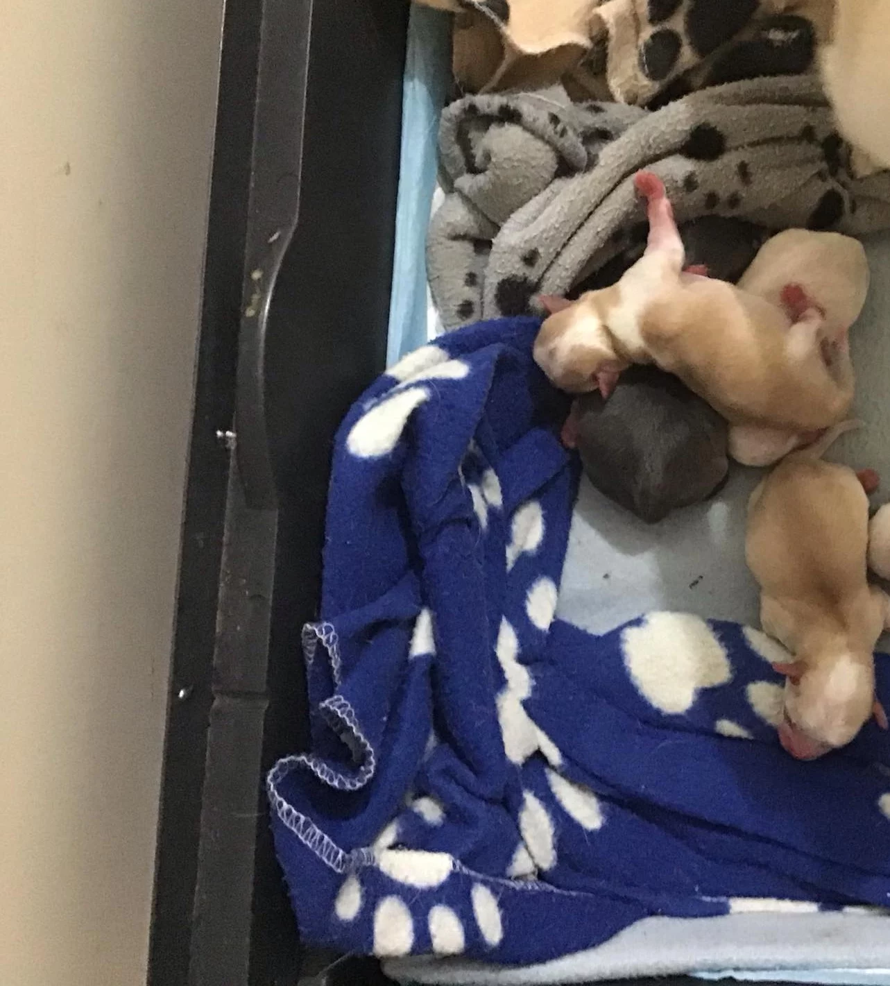 Dogs have access to: warm bedding, water at all times, ample space to exercise, natural light