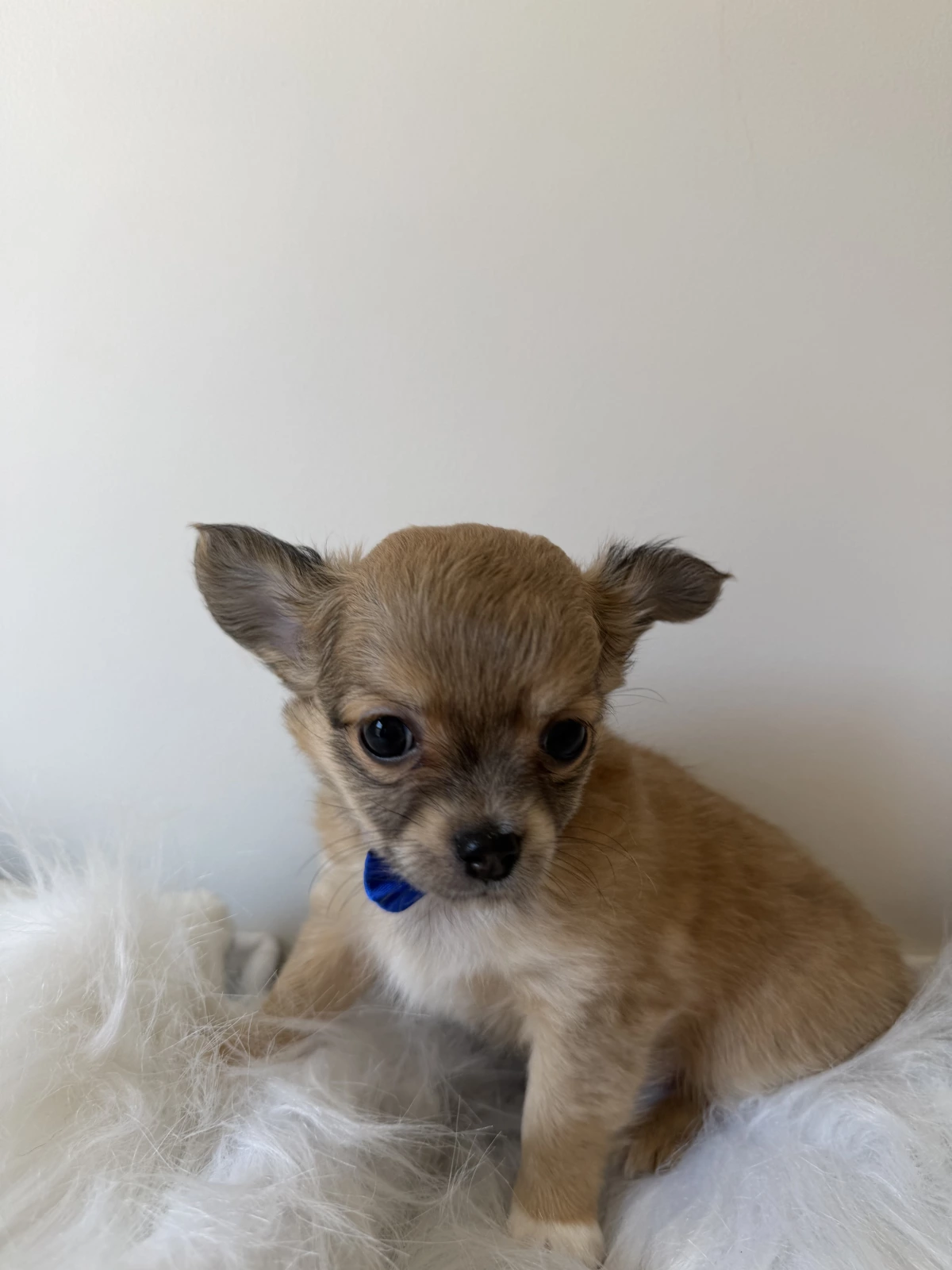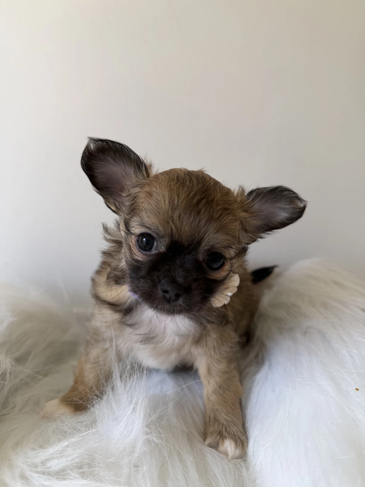 • Mum: Cream & white apple-head long-coat Chihuahua (~2.5kg)
