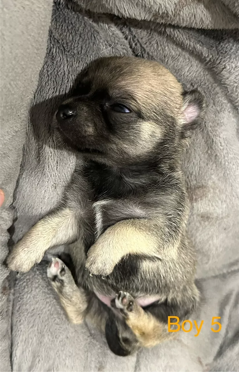 Mum is a fawn and white, smooth-coat apple head chihuahua;