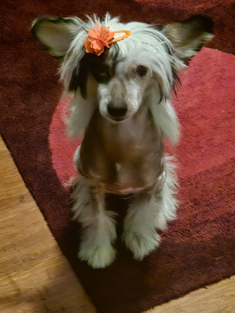 Are you looking for a unique, loving companion? Meet this stunning 7-month-old female Chinese Crested, a rare and elegant breed known for their affectionate nature and striking appearance.