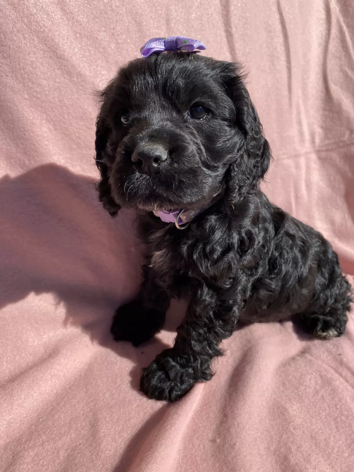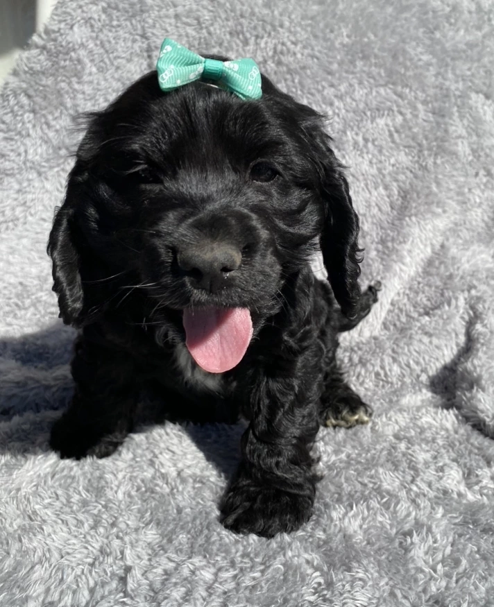 Mums name is Skylar. She is beautifully natured. Loves running,lots of cuddles and attention. And loves playing with her sisters shadow and Saturn. She is a gorgeous black purebred cocker spaniel.