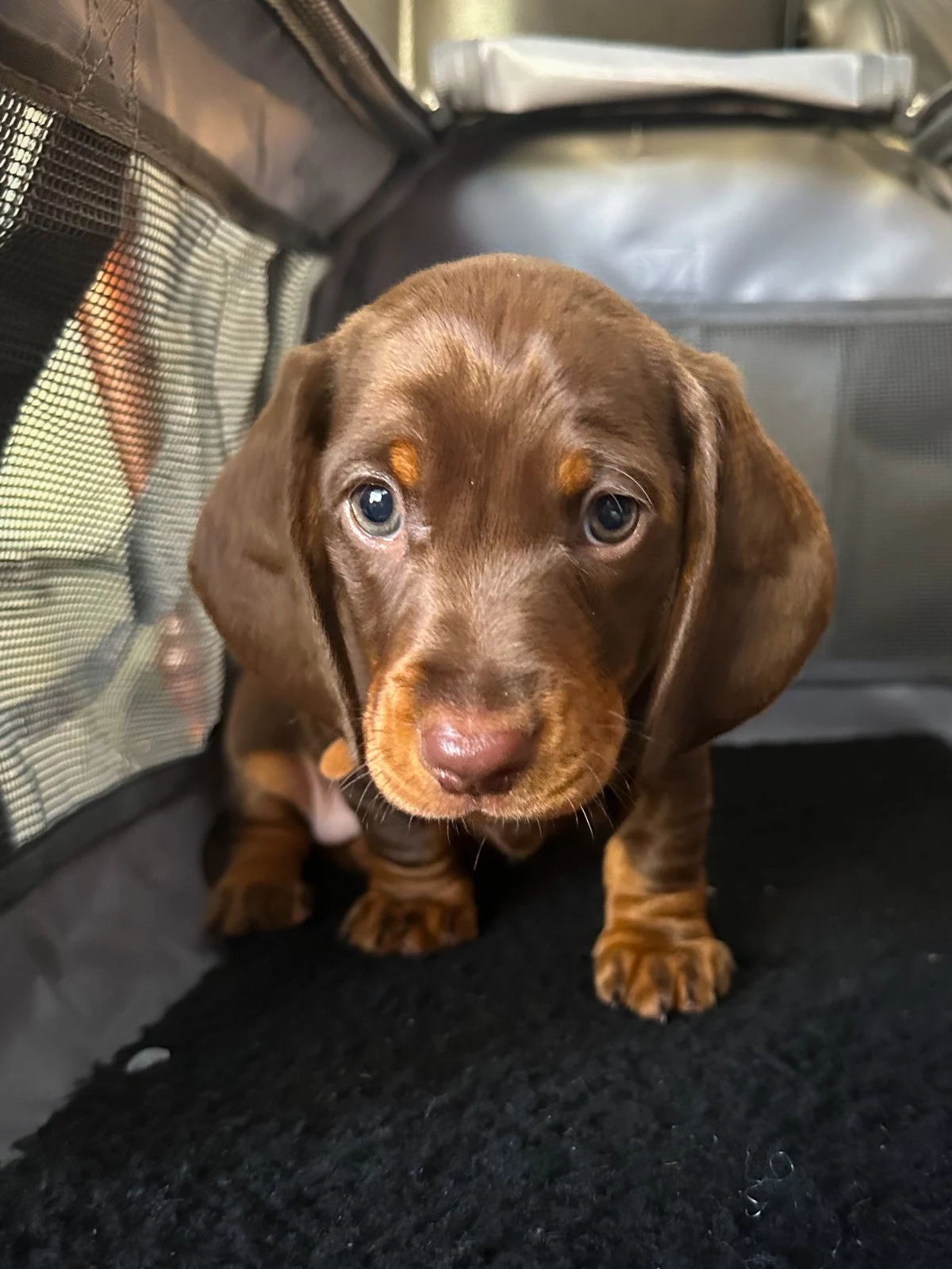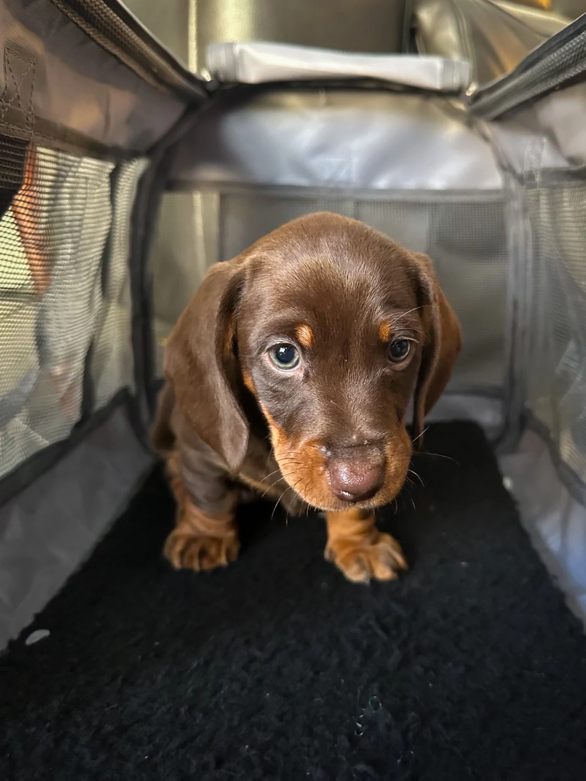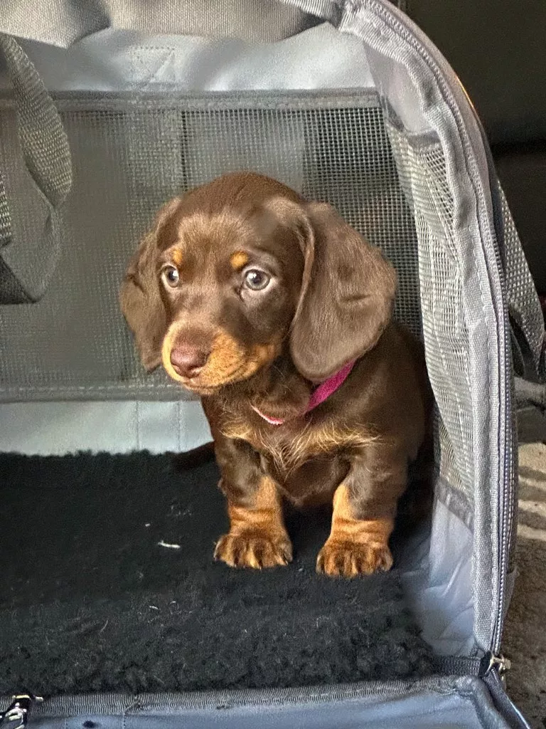 Mini chocolate Dachshund puppies are now looking for their forever homes. This beautiful little litter includes 1 girl and 3 boys, all with rich chocolate colouring and very similar markings — the puppies are nearly identical, making them extra special. They have been raised with care in a family environment and are already showing sweet, affectionate, and playful personalities.