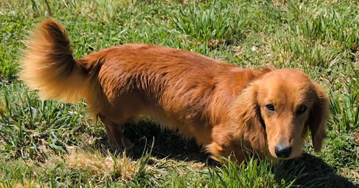 Due to an initial delay and then the expected owner relocating overseas, Rosco is available again for only the best home. He is a red hidden dapple longhaired mini dachshund carrying cream, PRA clear. He is mocrochipped.