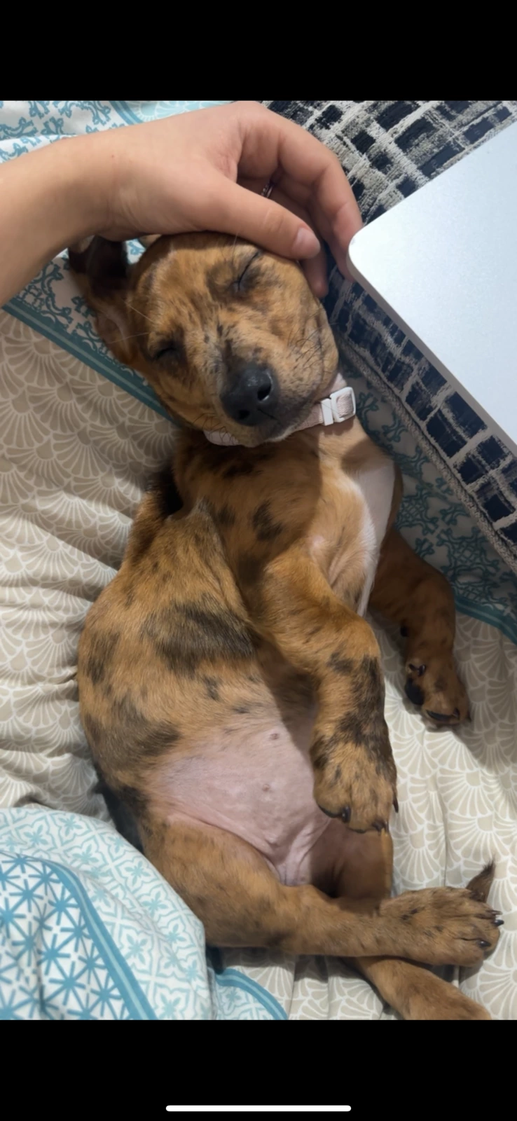 • Female, light brindle dapple coat