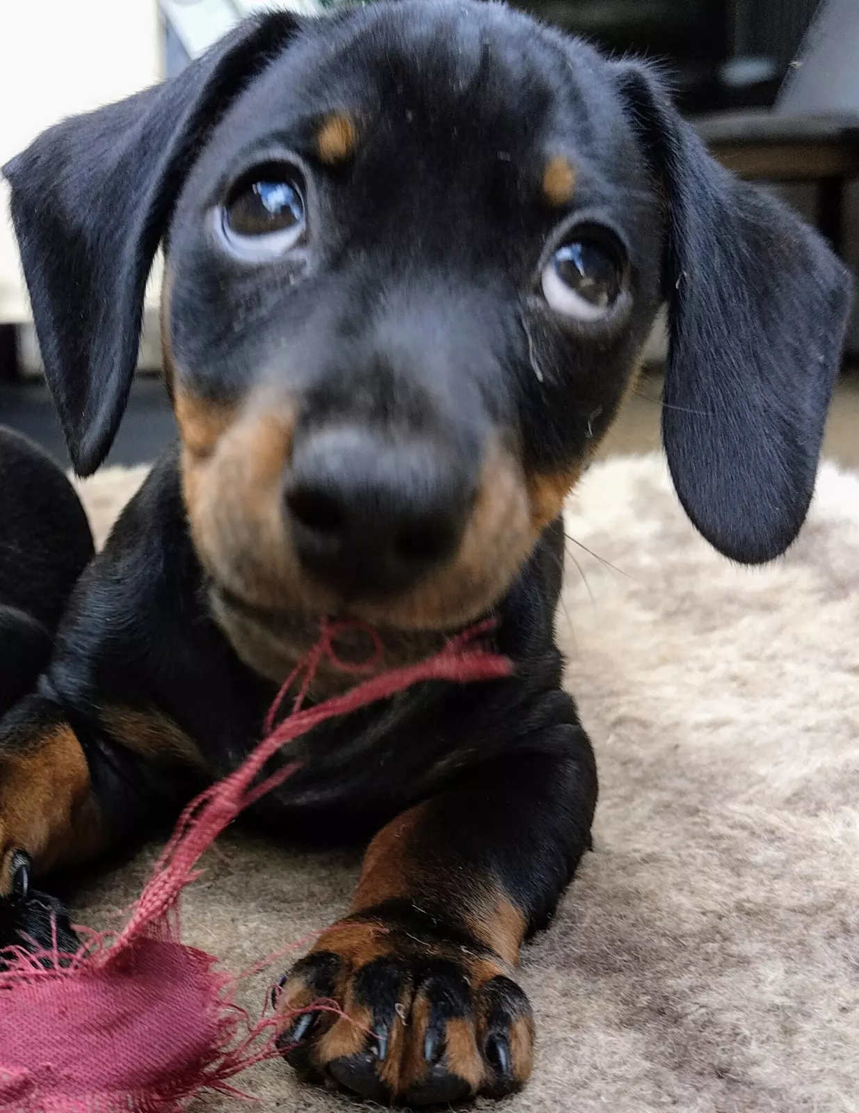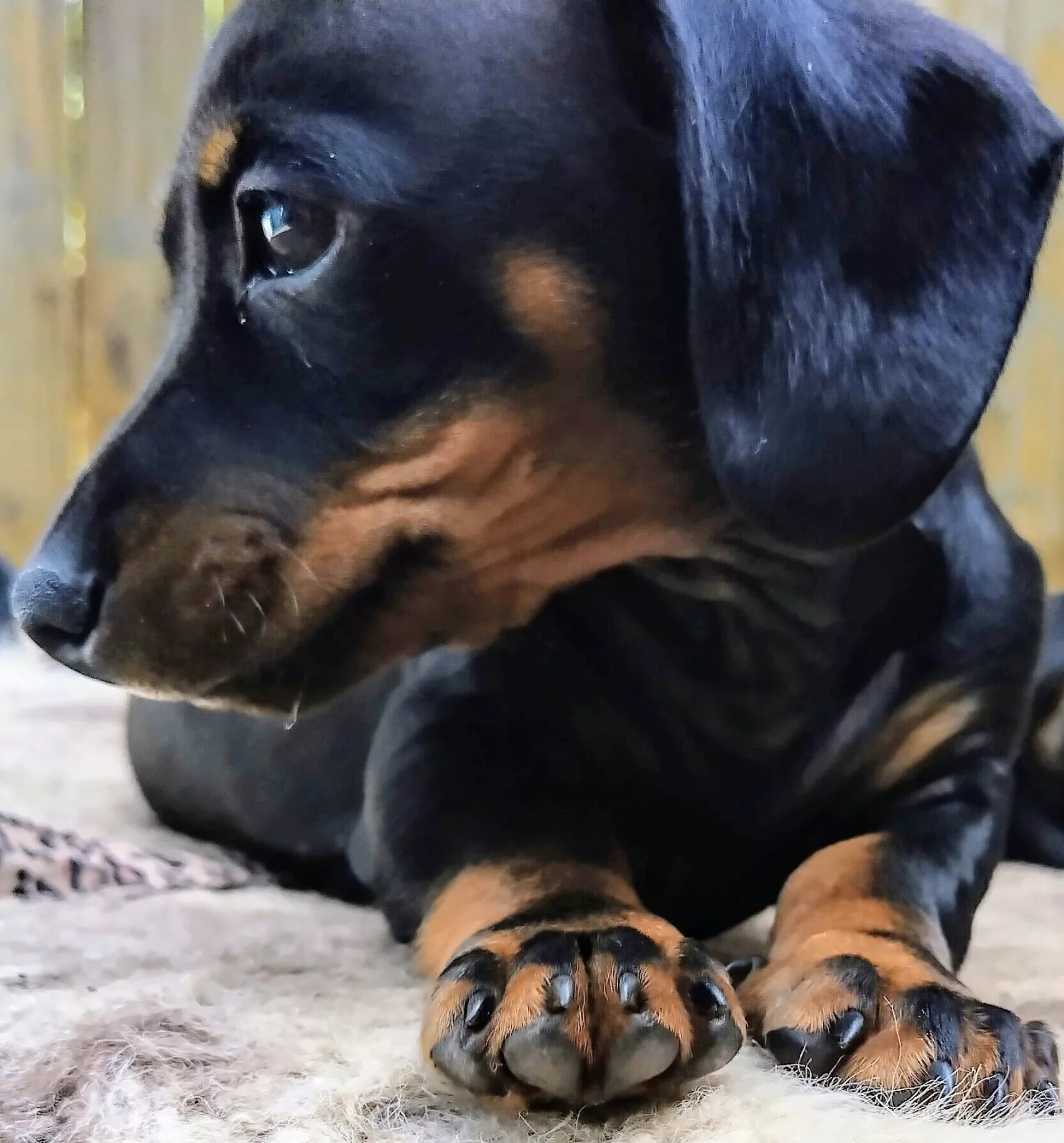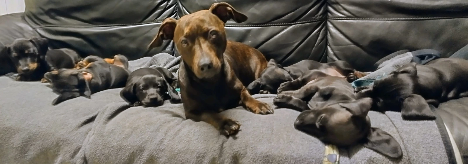 5 Beautiful Miniature dachshund cross daffy puppy's. Ready for there new homes Now. Born on the 10/02/2024 1x Black with white chest male. 1 all chocolate female $1200 1 black an tan female pink collar 1 black and tan male Blue collar 1 black an brindle female Puppies are fully wormed vet checked 1st vaccination and microchipped. Take home puppy pack Mum and dad are inside dogs family friendly great dog's. Pups well looked after happy pup's. They are short smooth coat Miniature Daffy's. only go to good homes. dad Is a solid black Miniature dachshund with paper's. Mum is dachshund/english staffy a daffy. Both will be here for viewing. welcome to meet and greet call anytime 🙂. My number 0436386419.