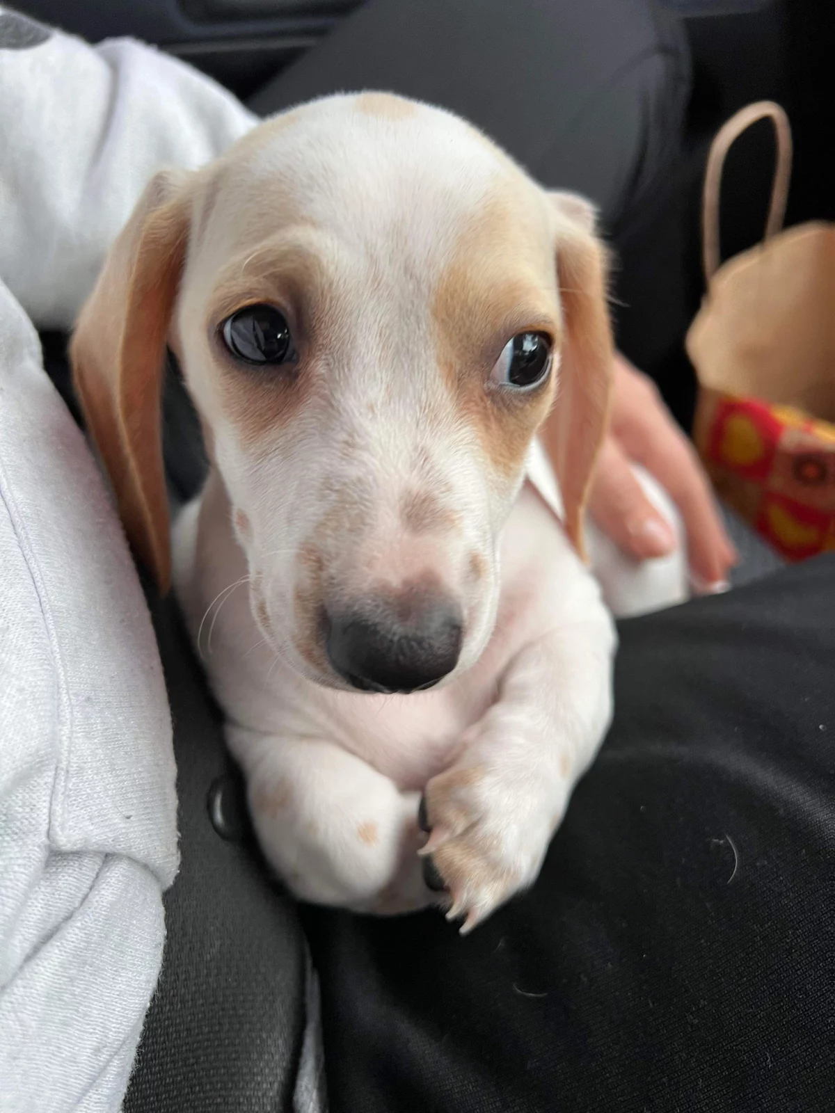I have a gorgeous 9-week-old piebald miniature dachshund puppy now ready to find her forever home. She has been raised in a loving family environment with plenty of attention and care, making her well socialised and used to household life. This sweet little girl has already been vaccinated, wormed, and microchipped.