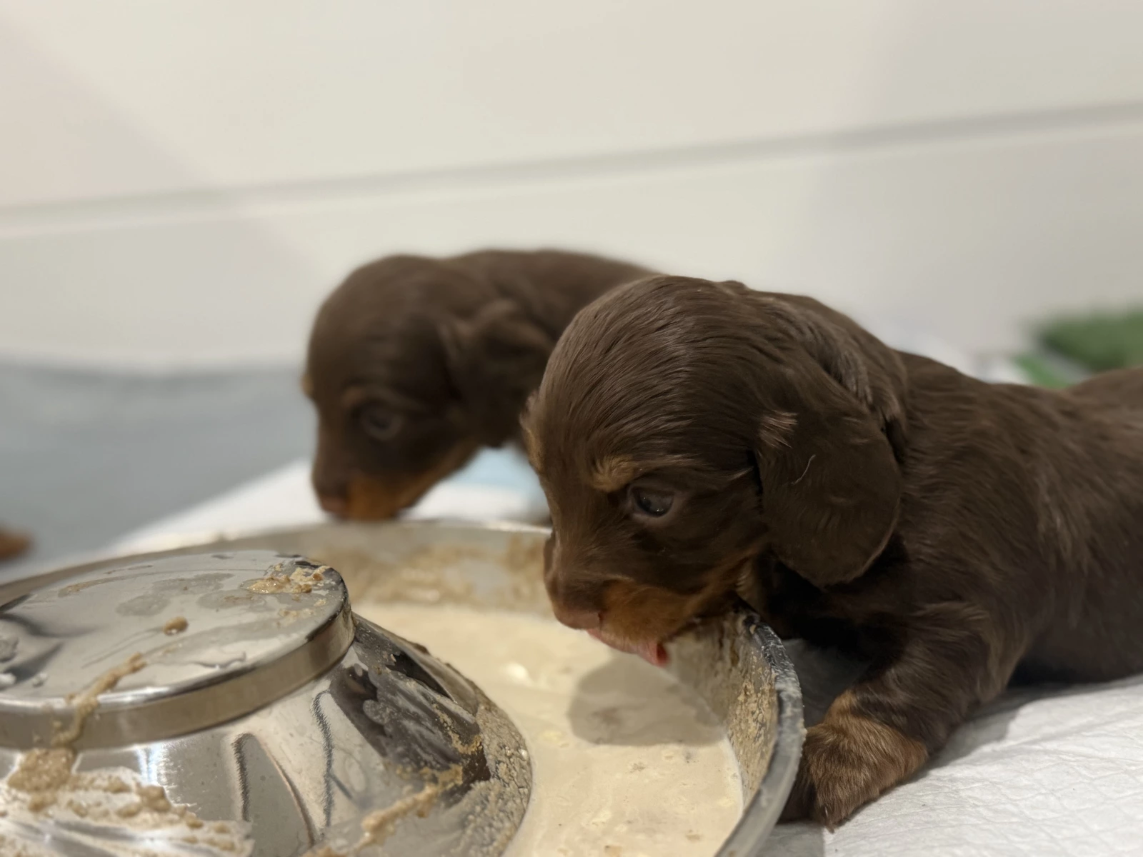 Puppies have started mush of Royal Canin and enjoy puppy milk.
