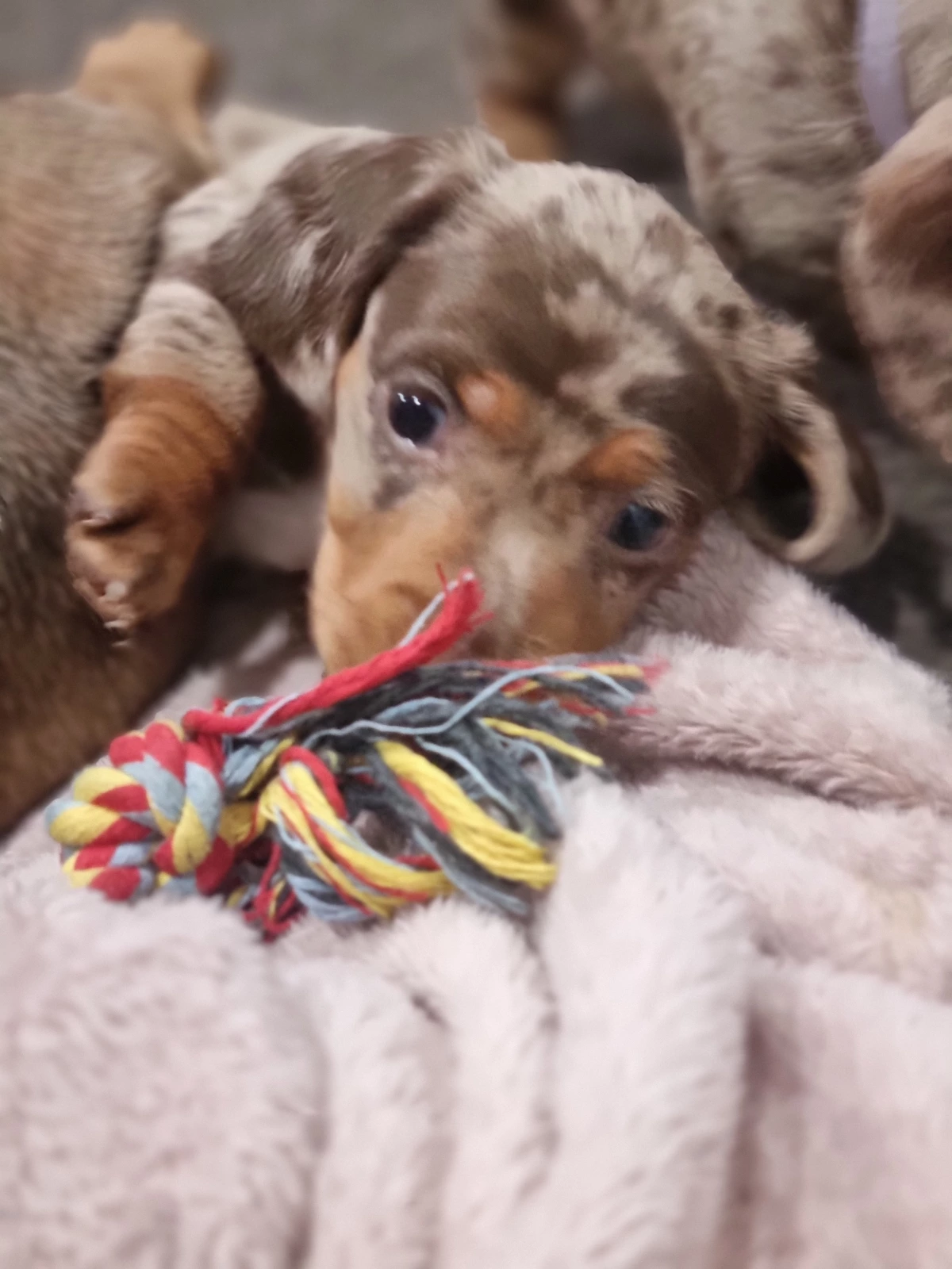 Their mum is a tri-merle, and dad is a handsome red, both with lovely temperaments that shine through in their pups.