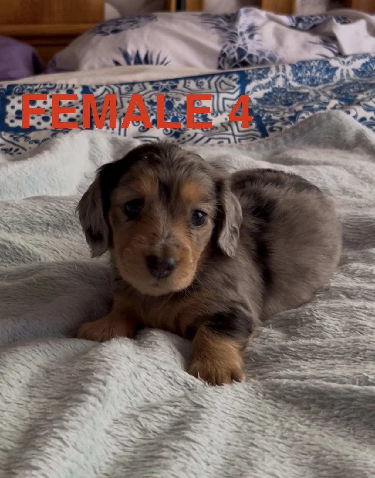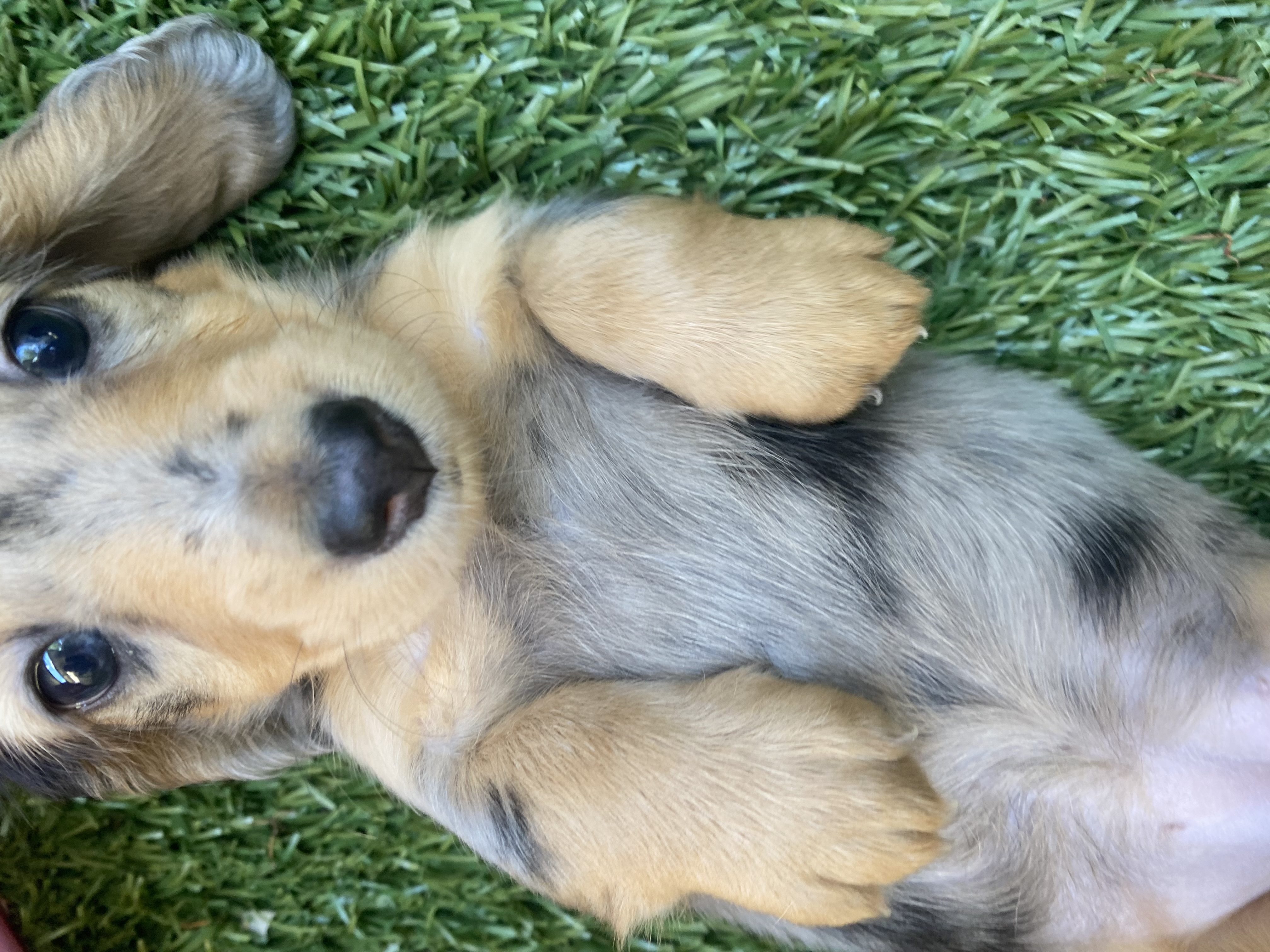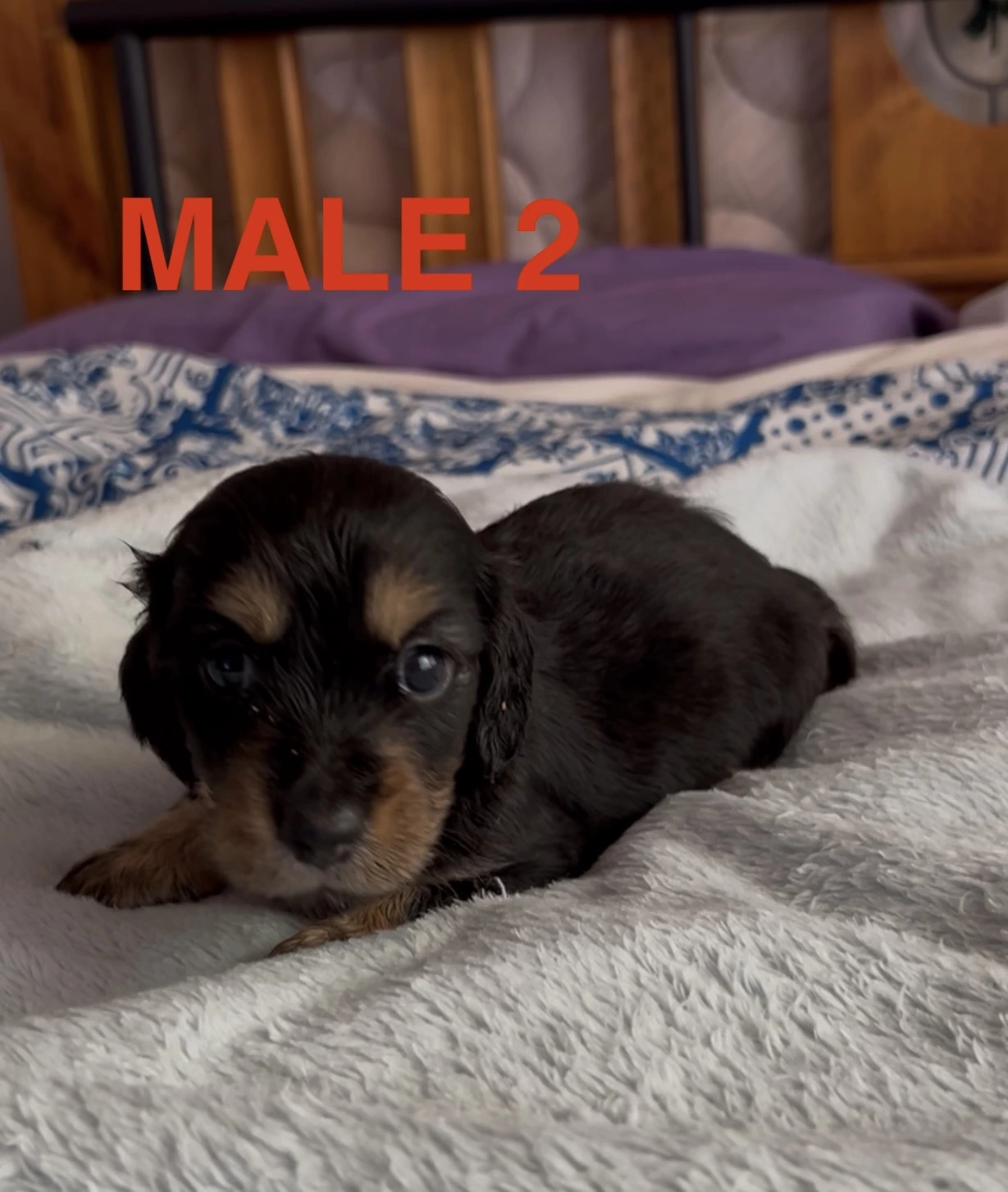 “Hi! Thanks so much for your interest in our long-haired Mini Dachshund puppies. You’ve picked a beautiful litter.”