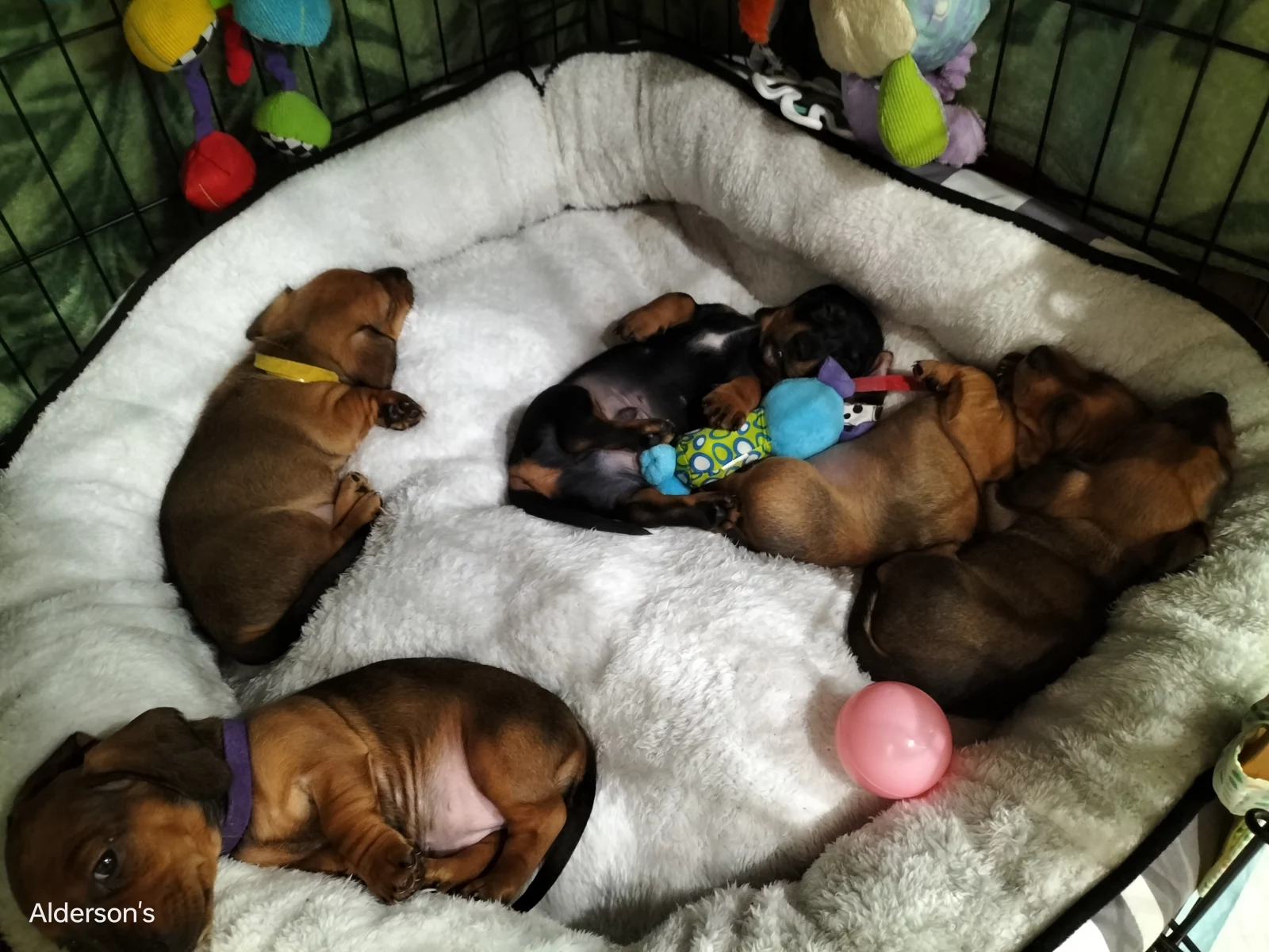 We have 3 absolutely beautiful miniature dachshund puppies now searching for their forever homes. Born on 6/10, this lovely little litter includes 2 red and tan girls and 1 striking black and tan piebald boy. They have been raised in a loving family environment with plenty of attention and socialisation, making them confident, affectionate, and ready to adapt to their new homes.