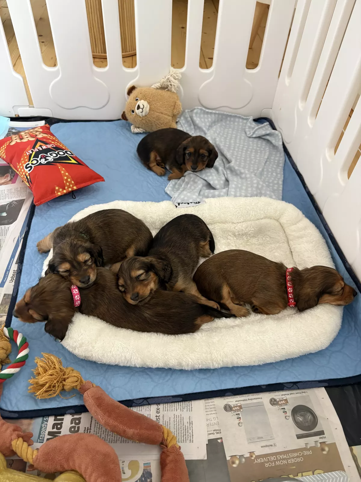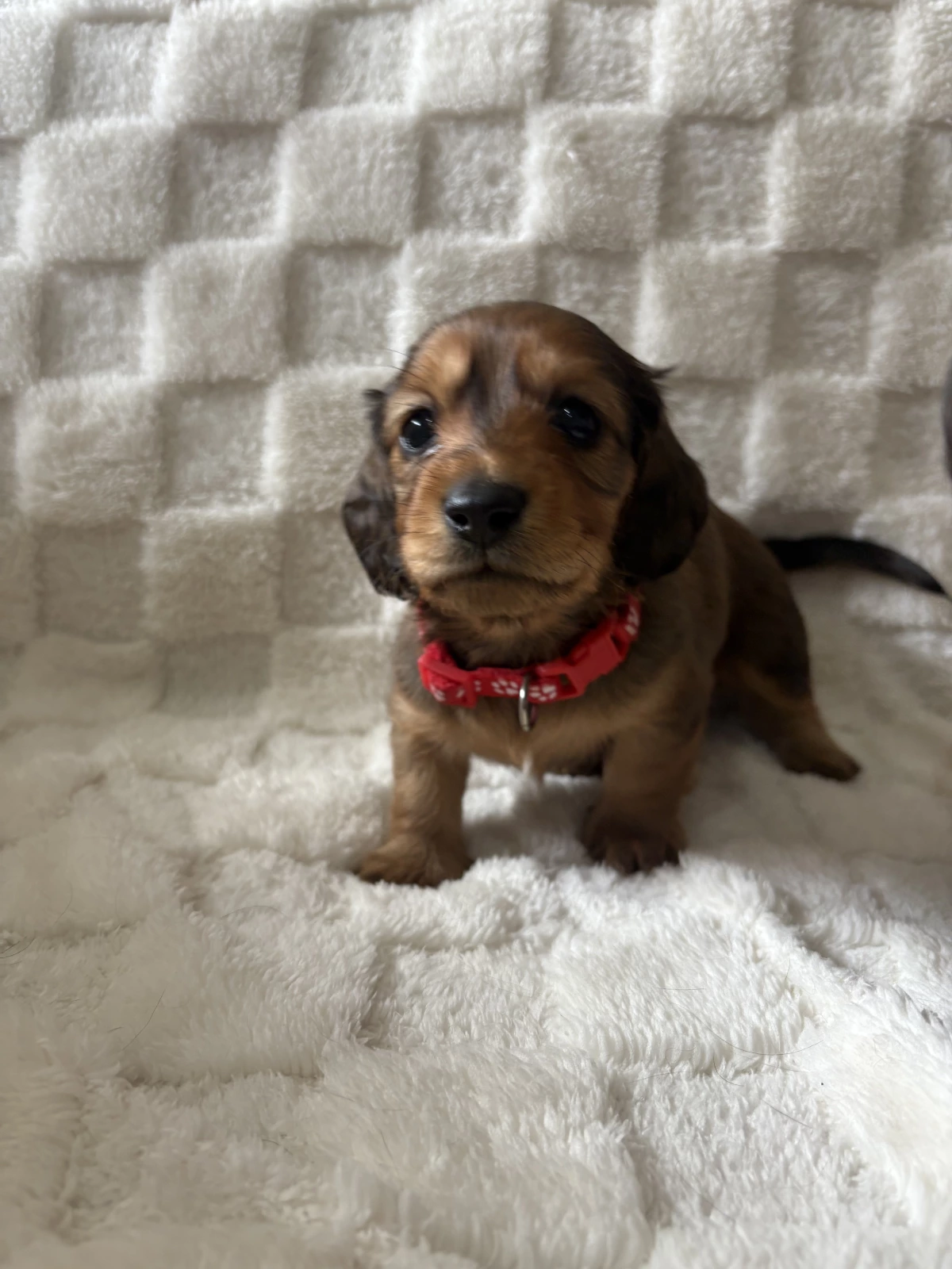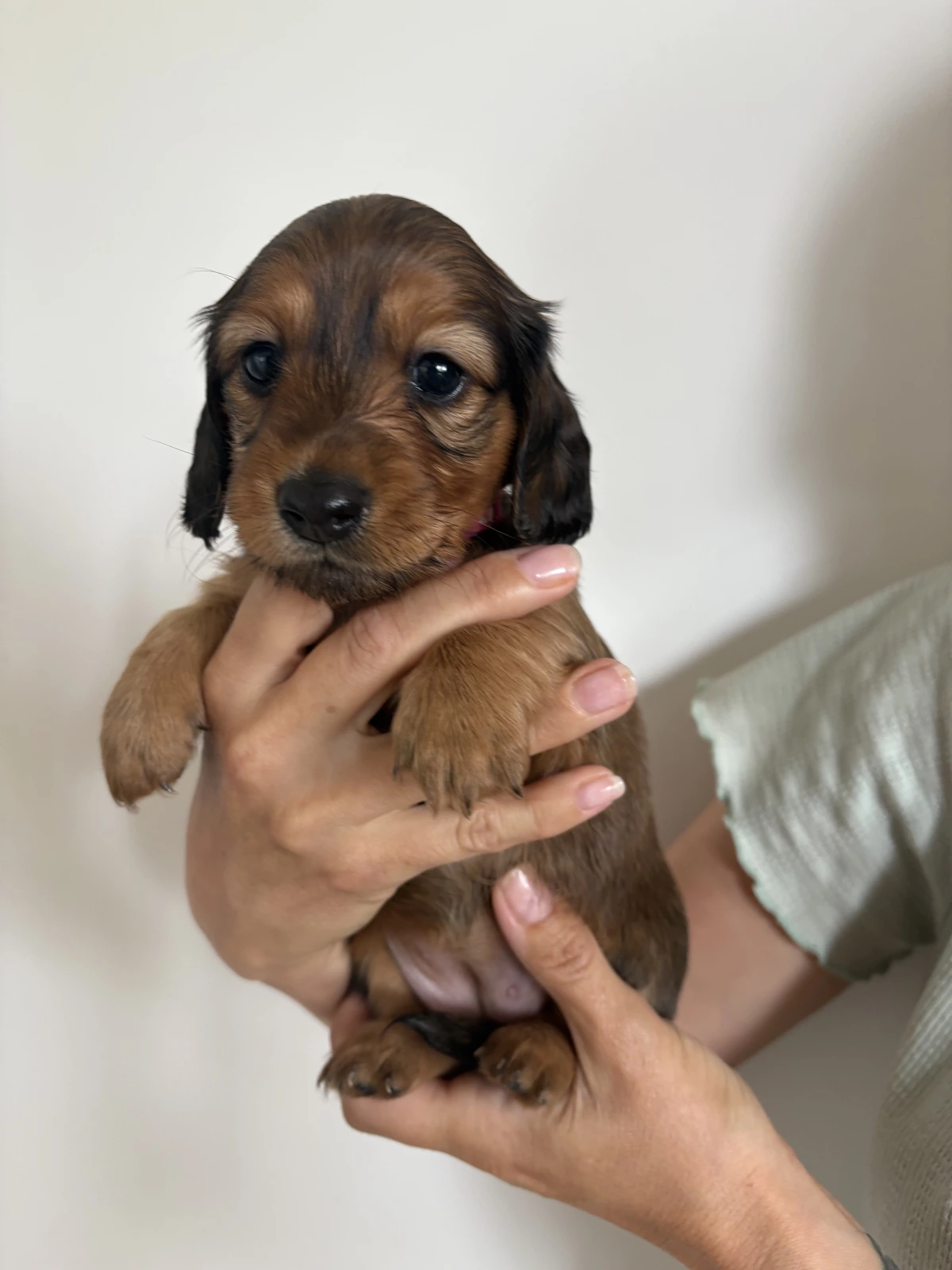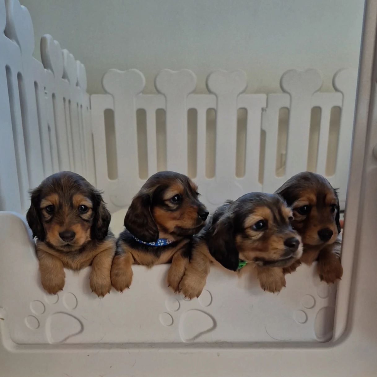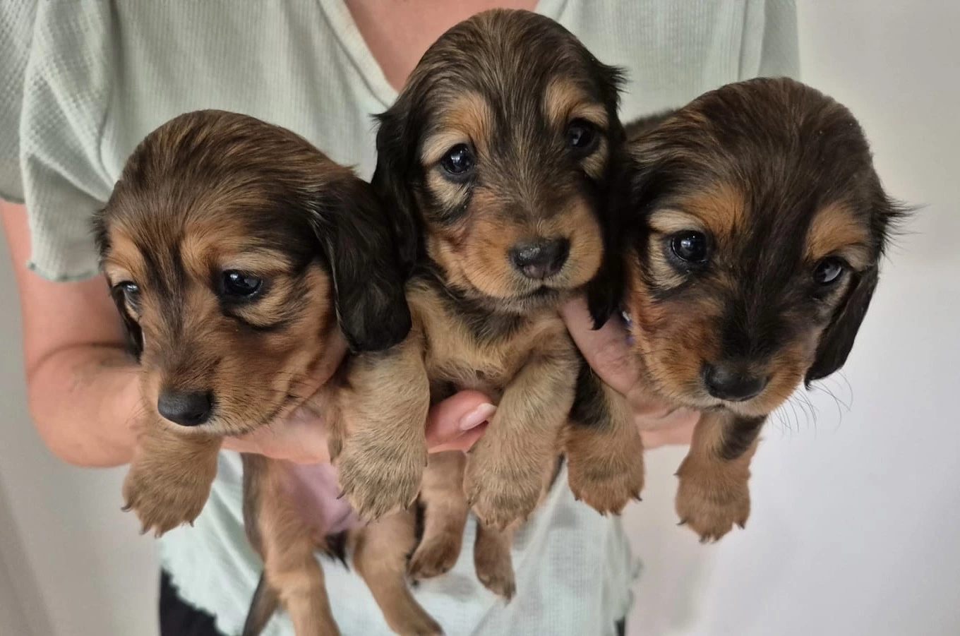 Our Puppies are bred from our healthy purebred long haired parent dogs. Mum is shaded red and Dad is black and Tan. Our adult dogs are genetically tested for genetic diseases such as IVDD, PRA and SDMD as well as DNA, coat colours and traits. Our dogs are in optimum condition.