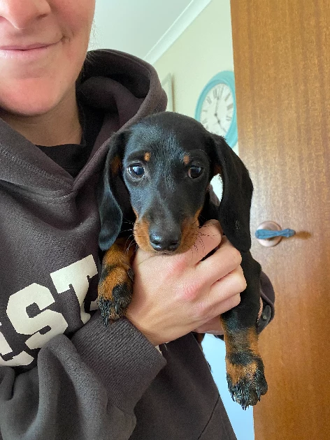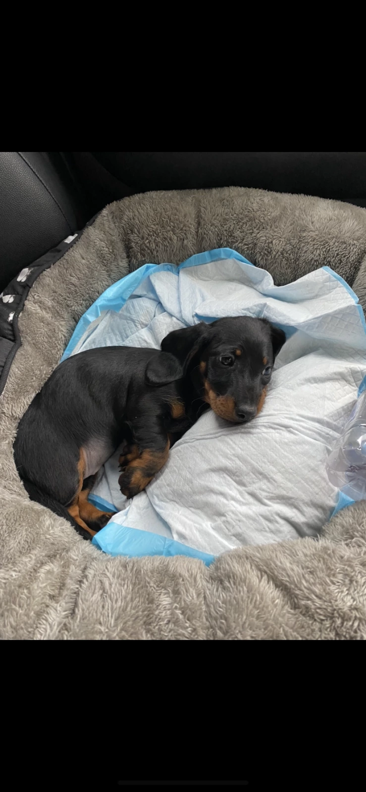 We have a beautiful black and tan female dachshund puppy searching for her forever family. She is 12 weeks old and has been given the very best start to life.
