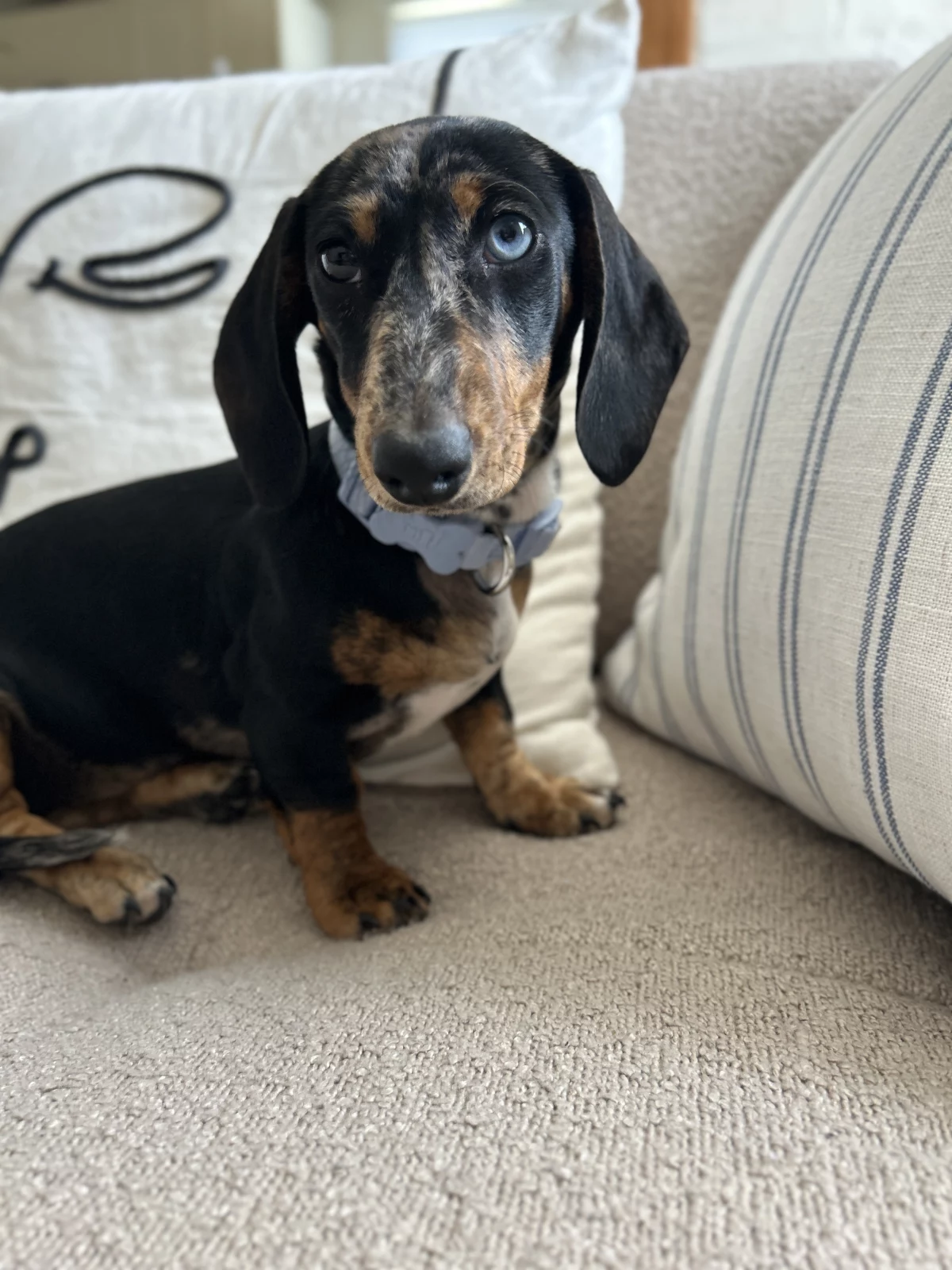 Mini dachshund silver dapple,microchip and vaccinated worm tablet given she is a people person puppy loves her food sleep in her own bed loves to walk loves to play very sweet with kids and people loves cuddles