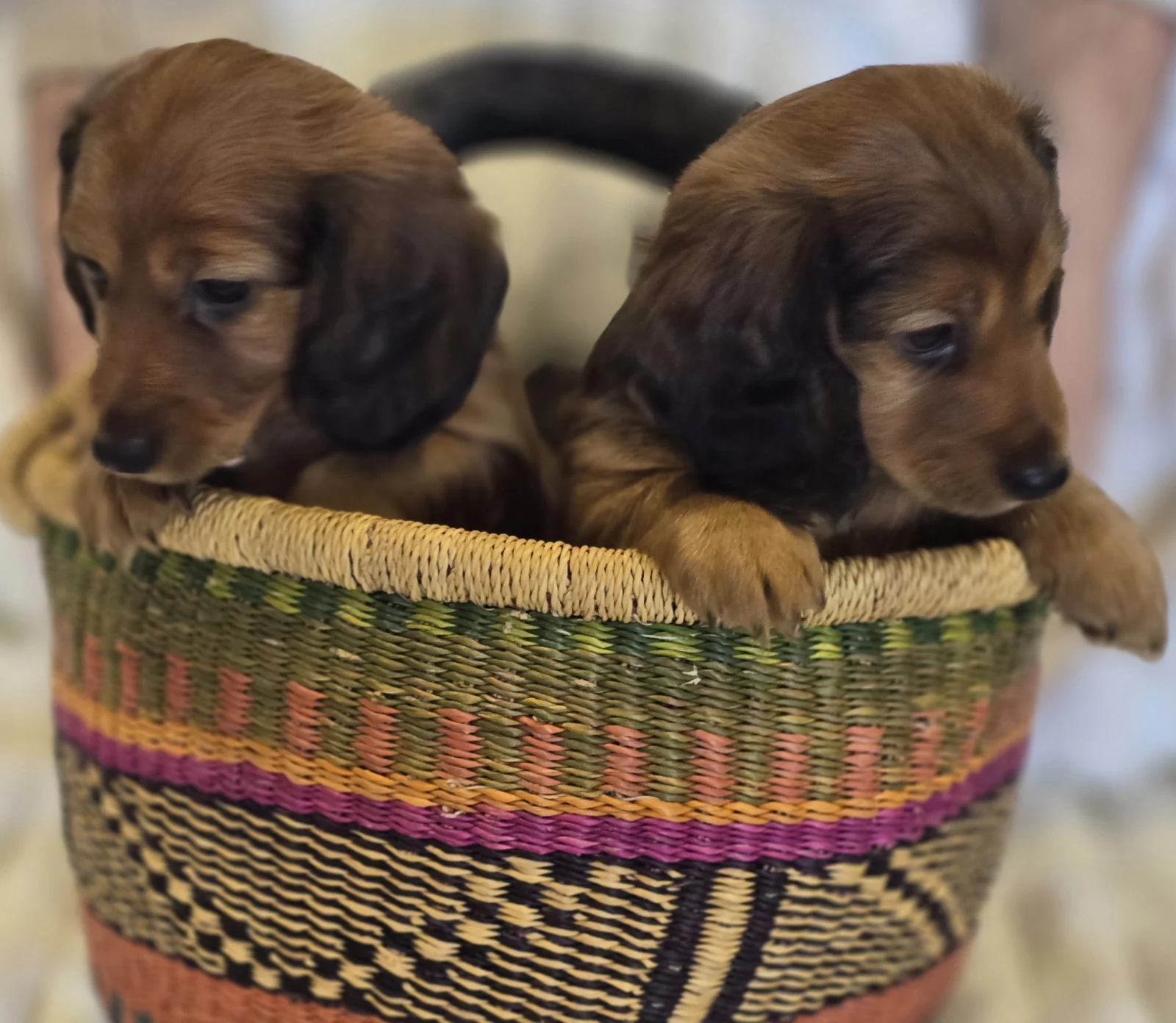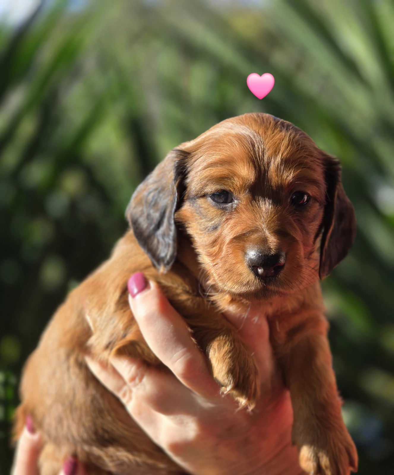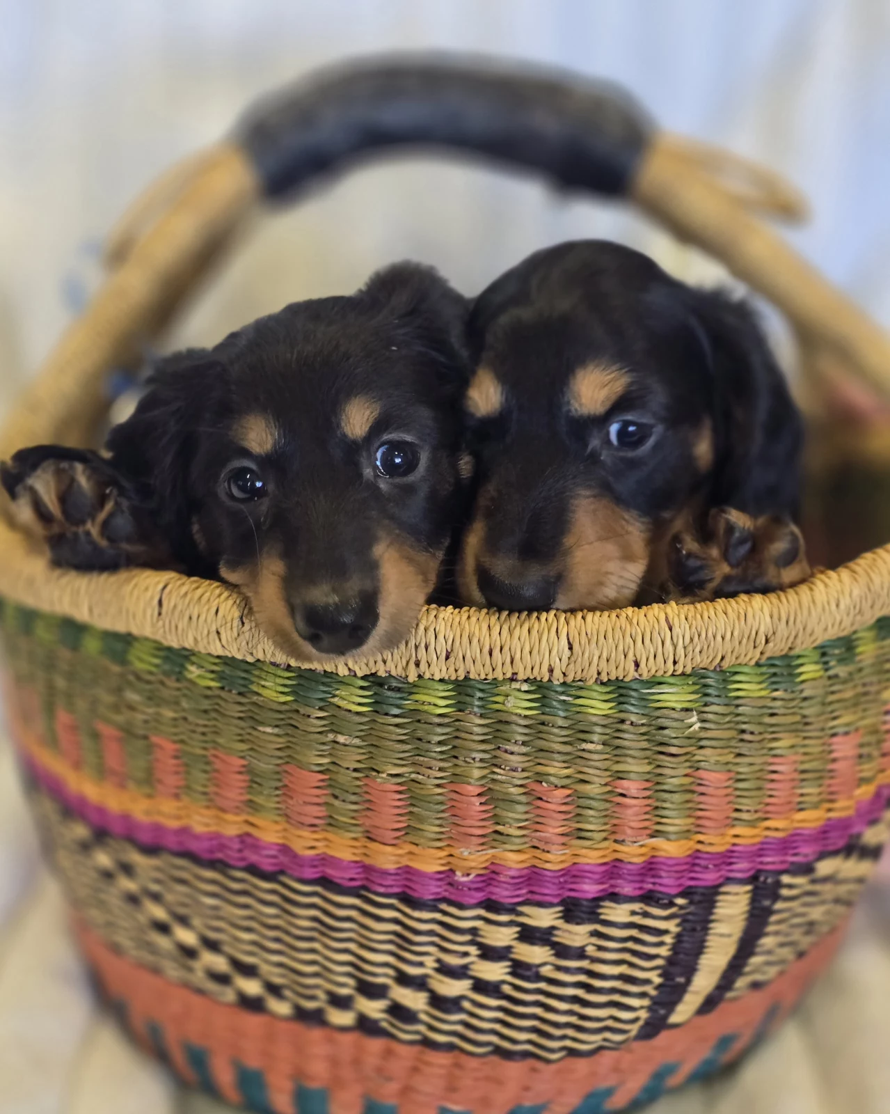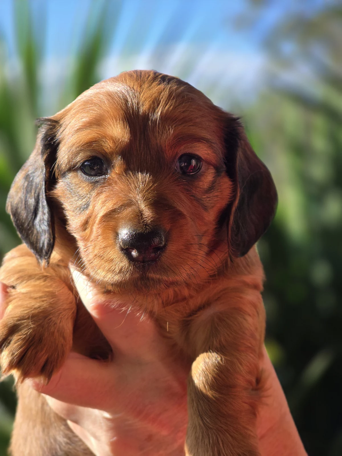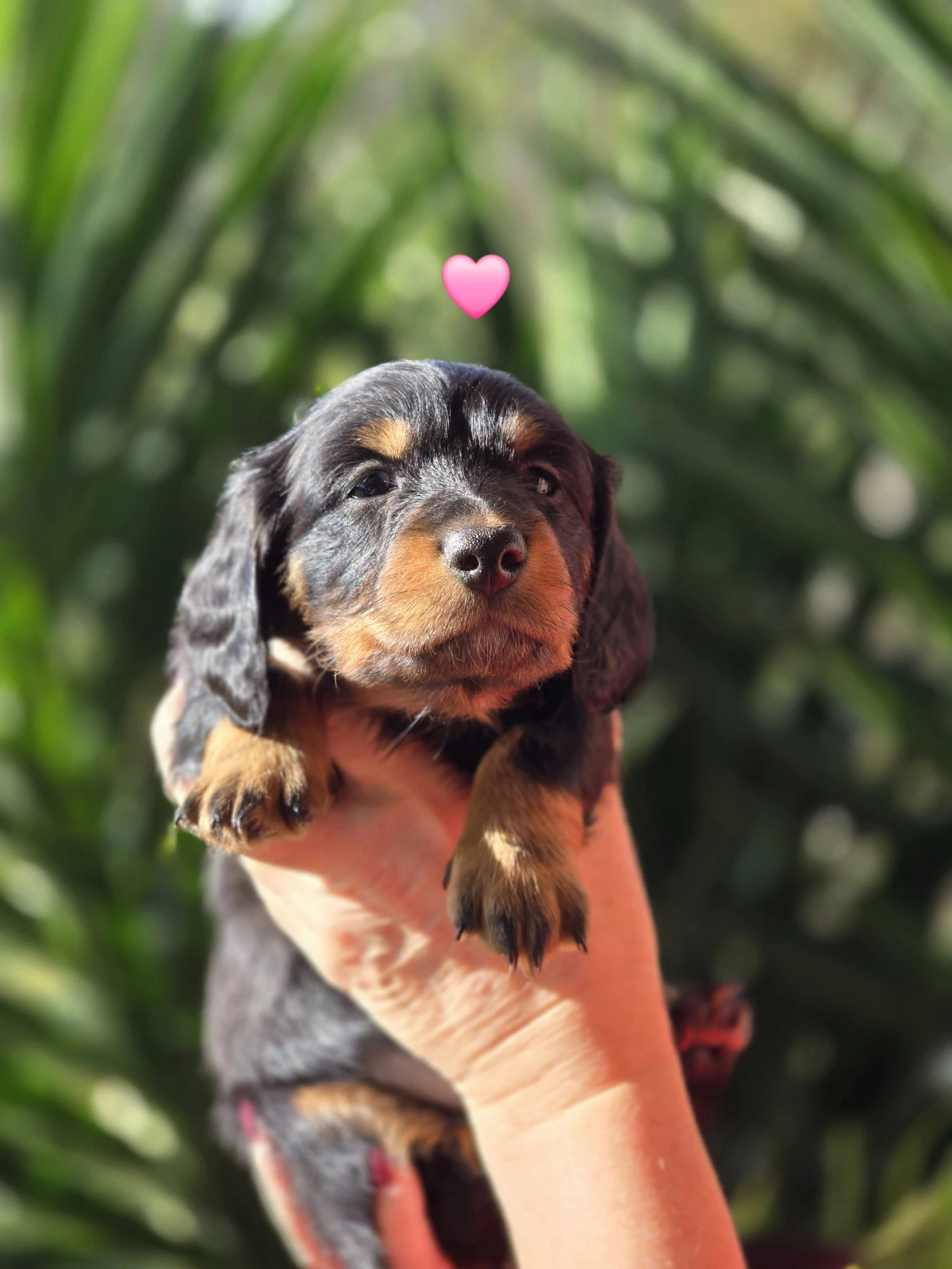 Black and Tan Longhaired female dachshund, 1 black and Tan Longhaired Male Dachshund 1 shaded red male Longhaired Dachshund 1 Longhaired ted female dachshund. Born 19/6/25