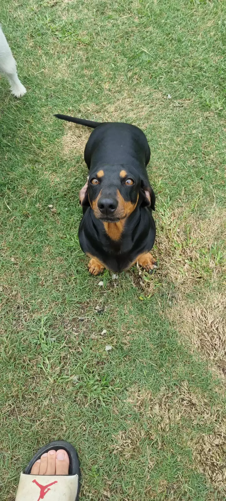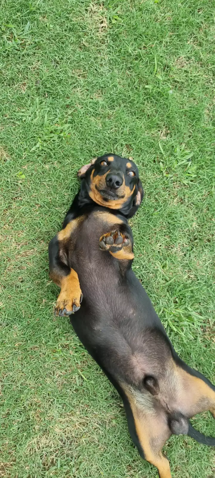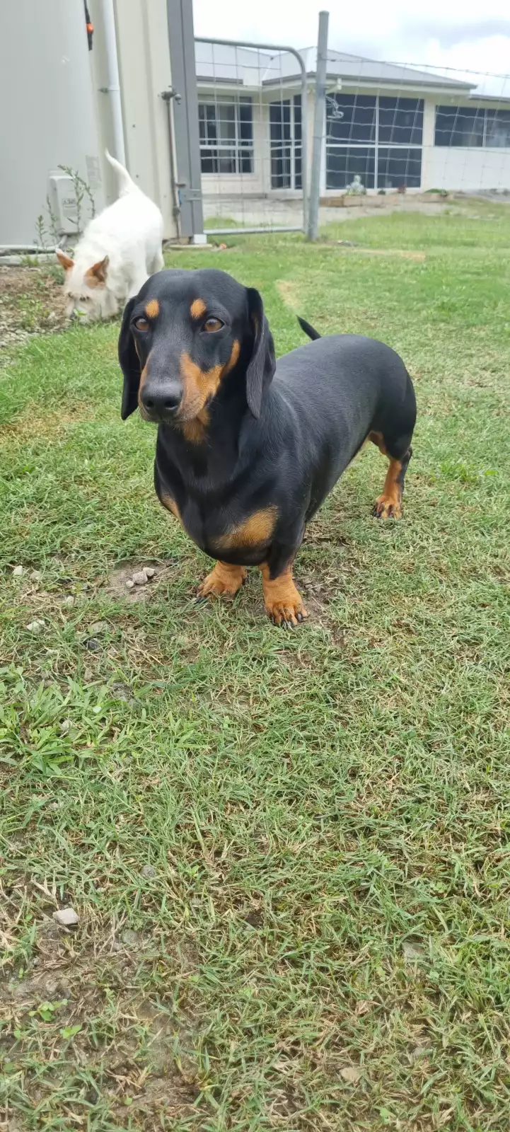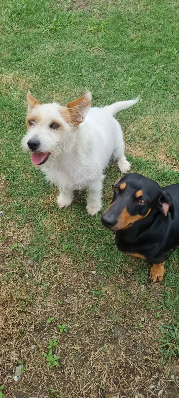 Maddie (Desexed) is our 3 year old white and brown Jack Russell, Duggie (not desexed) is a 2 year old black and brown Dachshund.