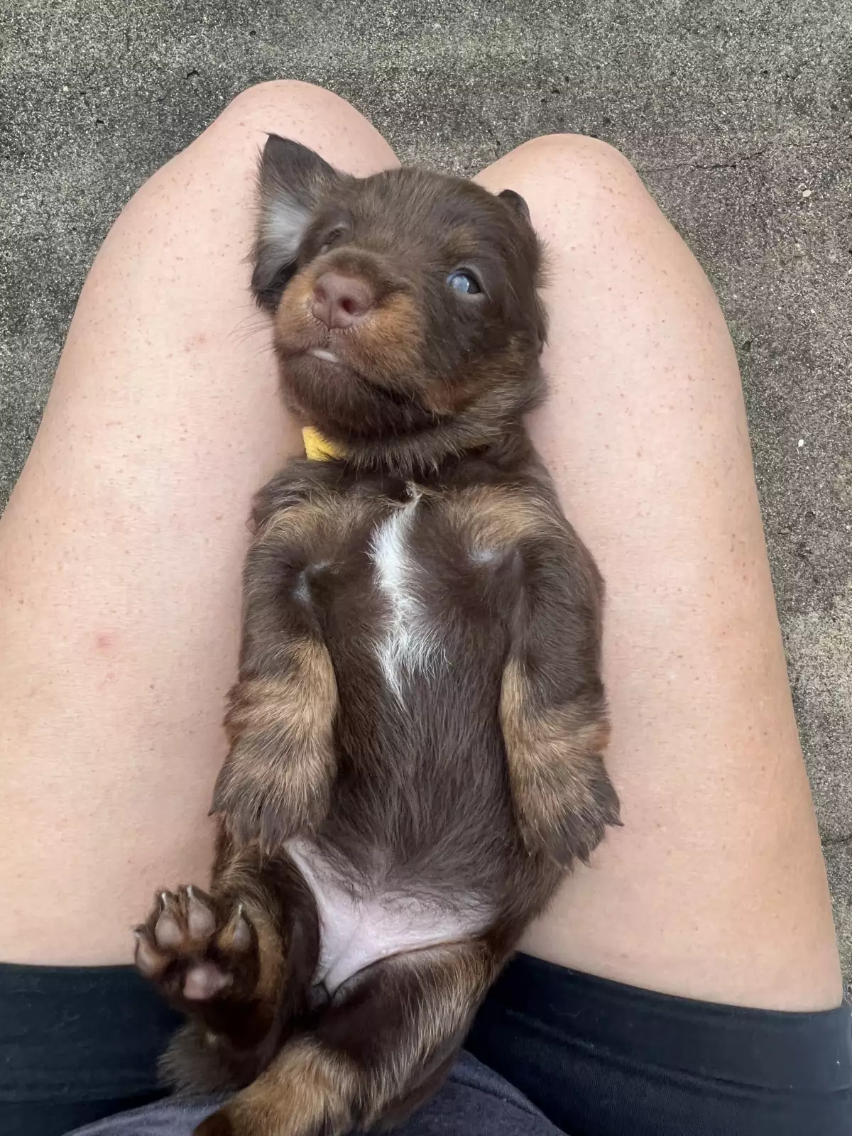 Mum is a Chocolate and Tan short haired and dad is a Chocolate and Tan Piebald long haired. Both mum and dad have full DNA and health check (can supply photos and test results upon request) All puppies carry long haired gene as well as piebald gene.
