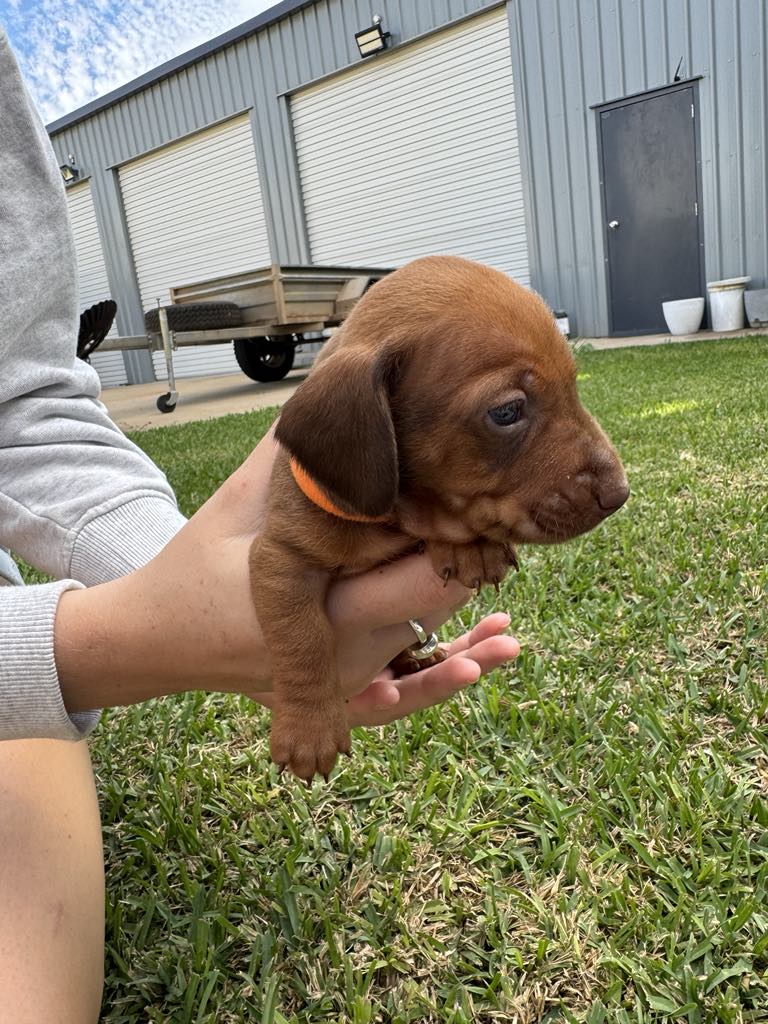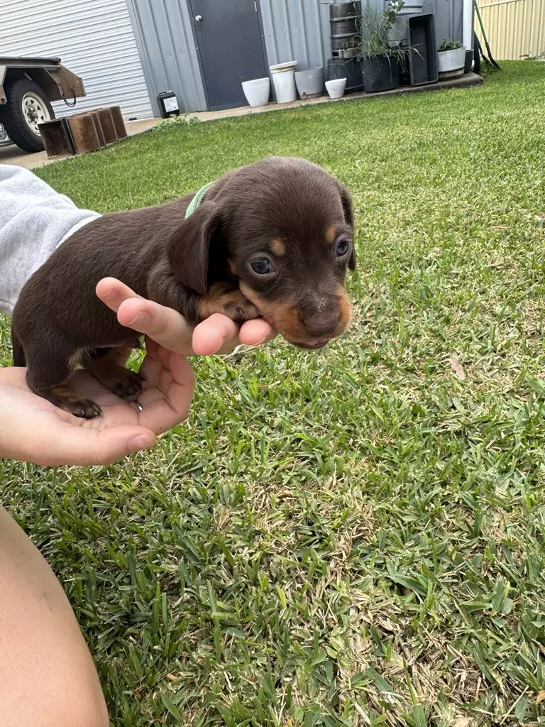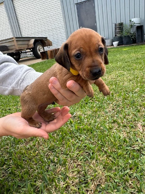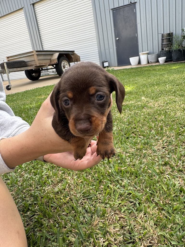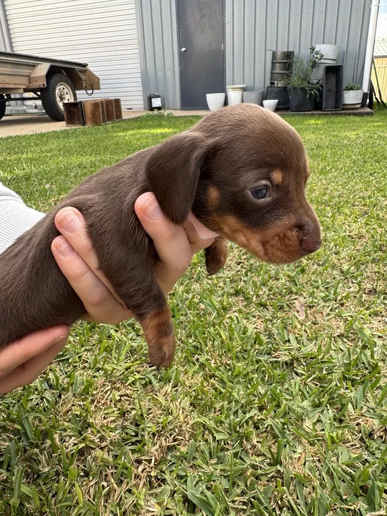 Hi, I have 5 gorgeous miniature dachshund puppies looking for their loving forever homes. They will be ready to leave from the 30th of May. In the litter there are 3 beautiful males and 2 lovely females available, each with their own sweet personality already shining through. All puppies will come wormed, vaccinated, microchipped, and fully vet checked, ensuring they are healthy and well prepared for their new families. Raised in a caring environment with plenty of attention and socialisation, these little dachshunds will make wonderful companions. Secure your puppy today and welcome a loyal friend for life.