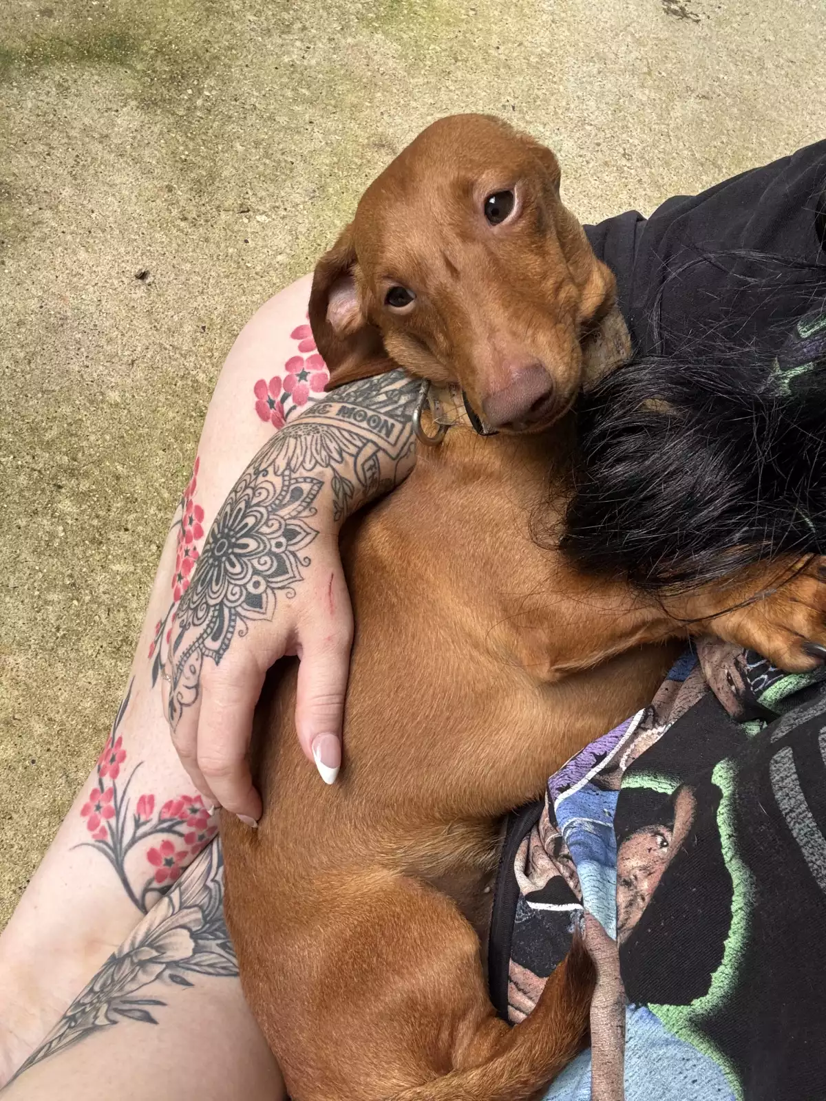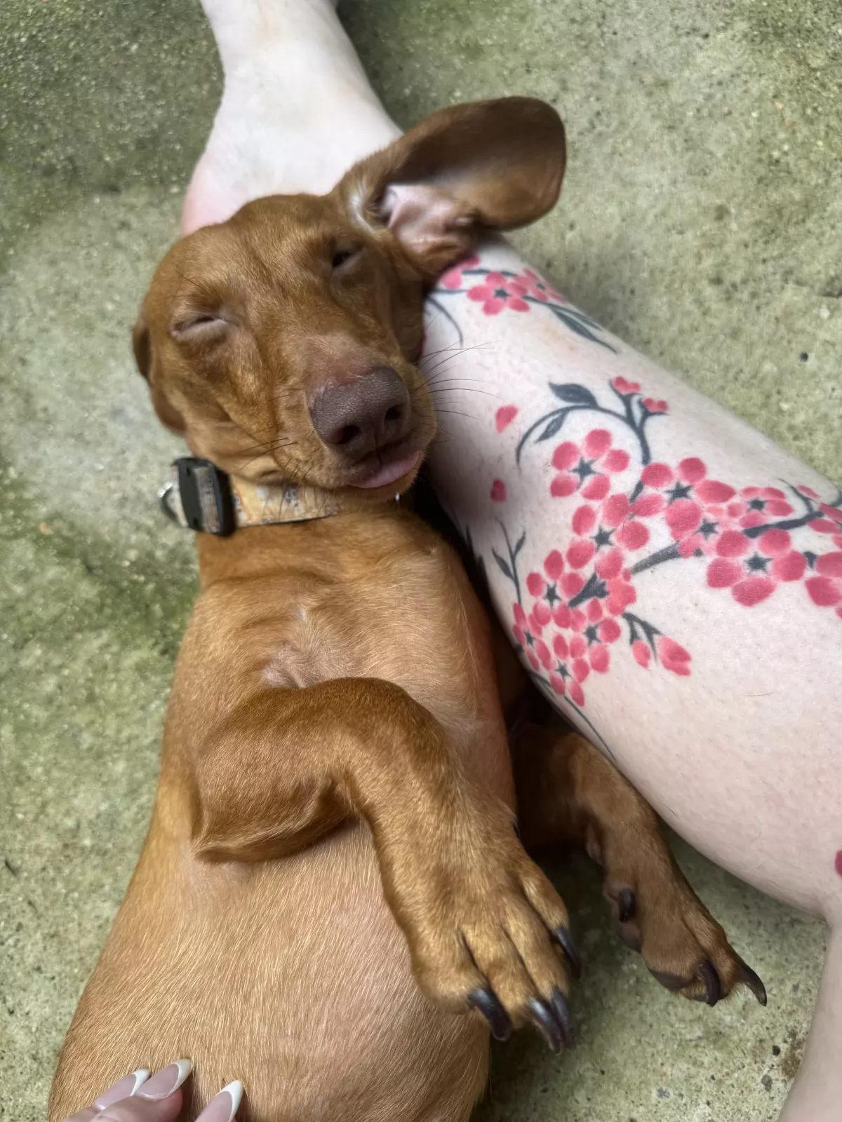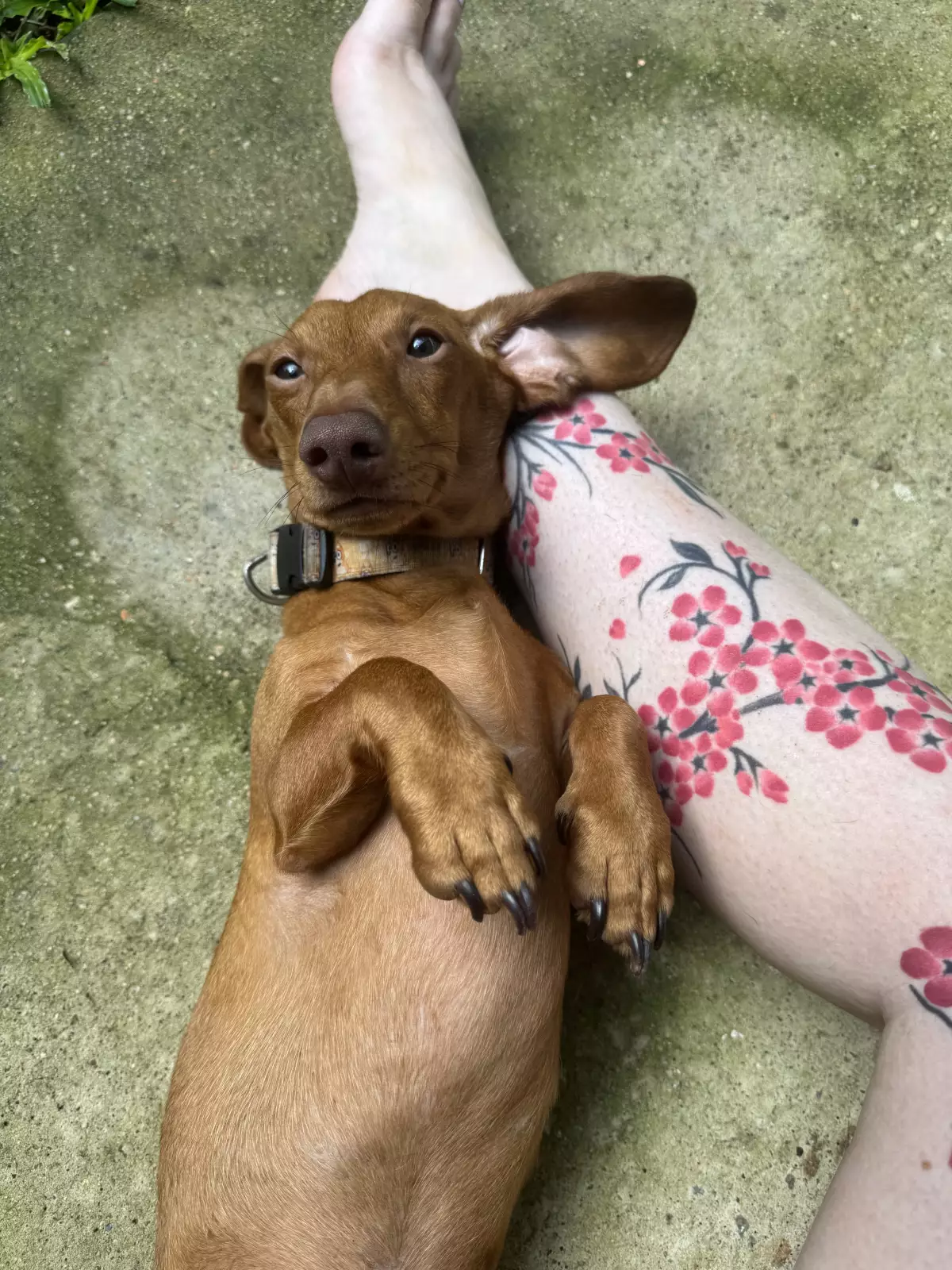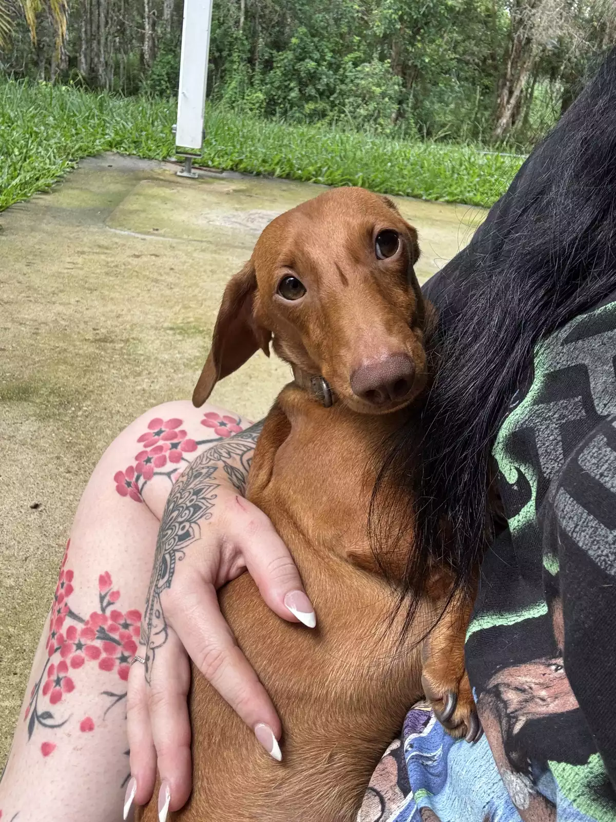 Meet Merle, a beautiful brown Dachshund. He was born on 17-04-2024