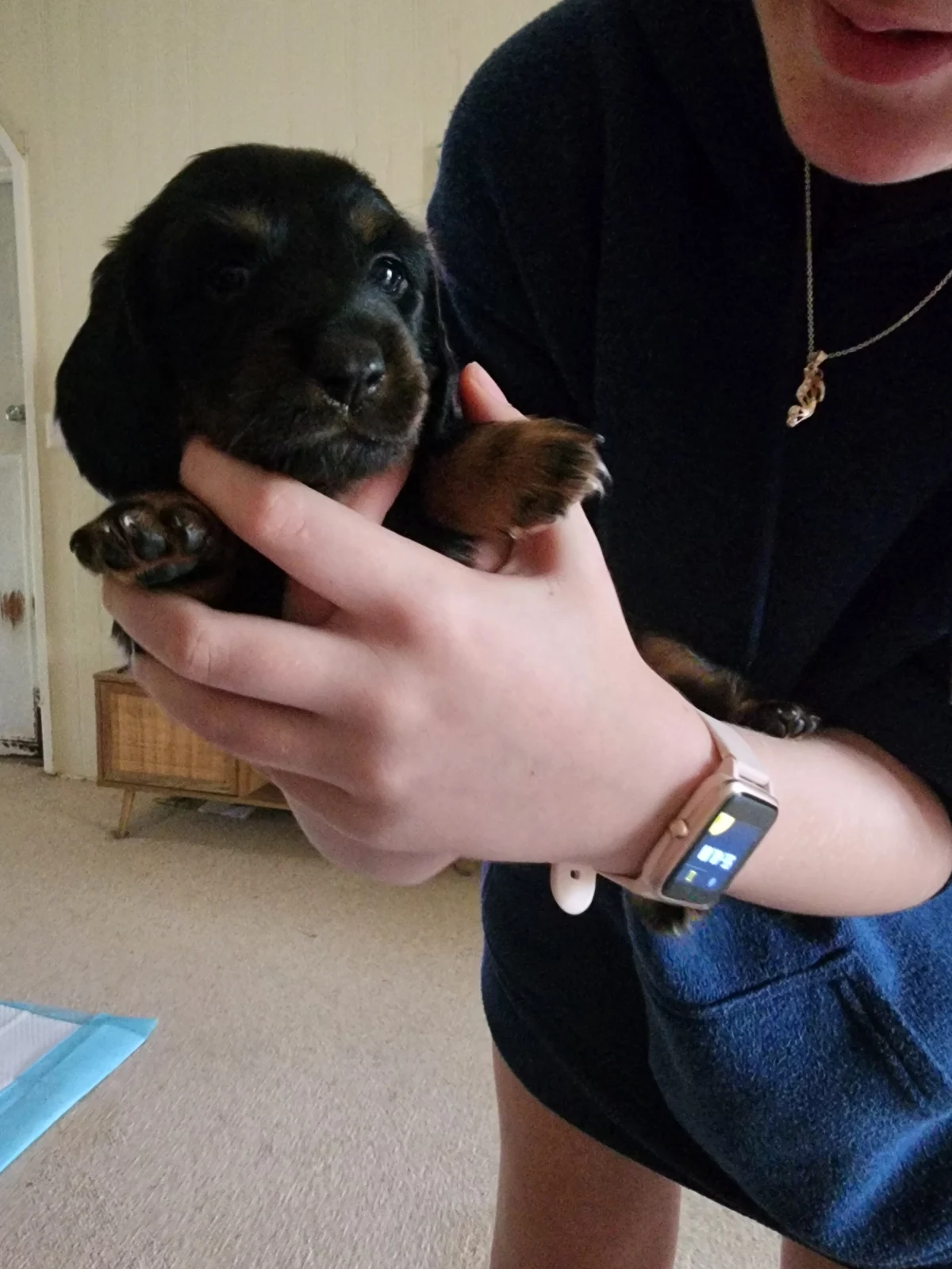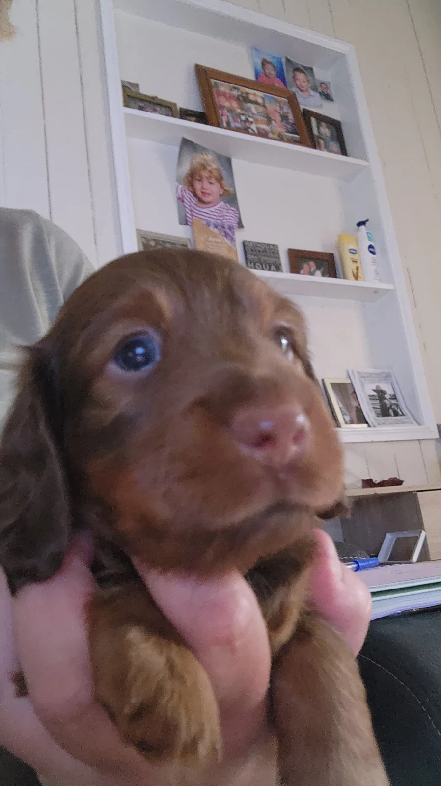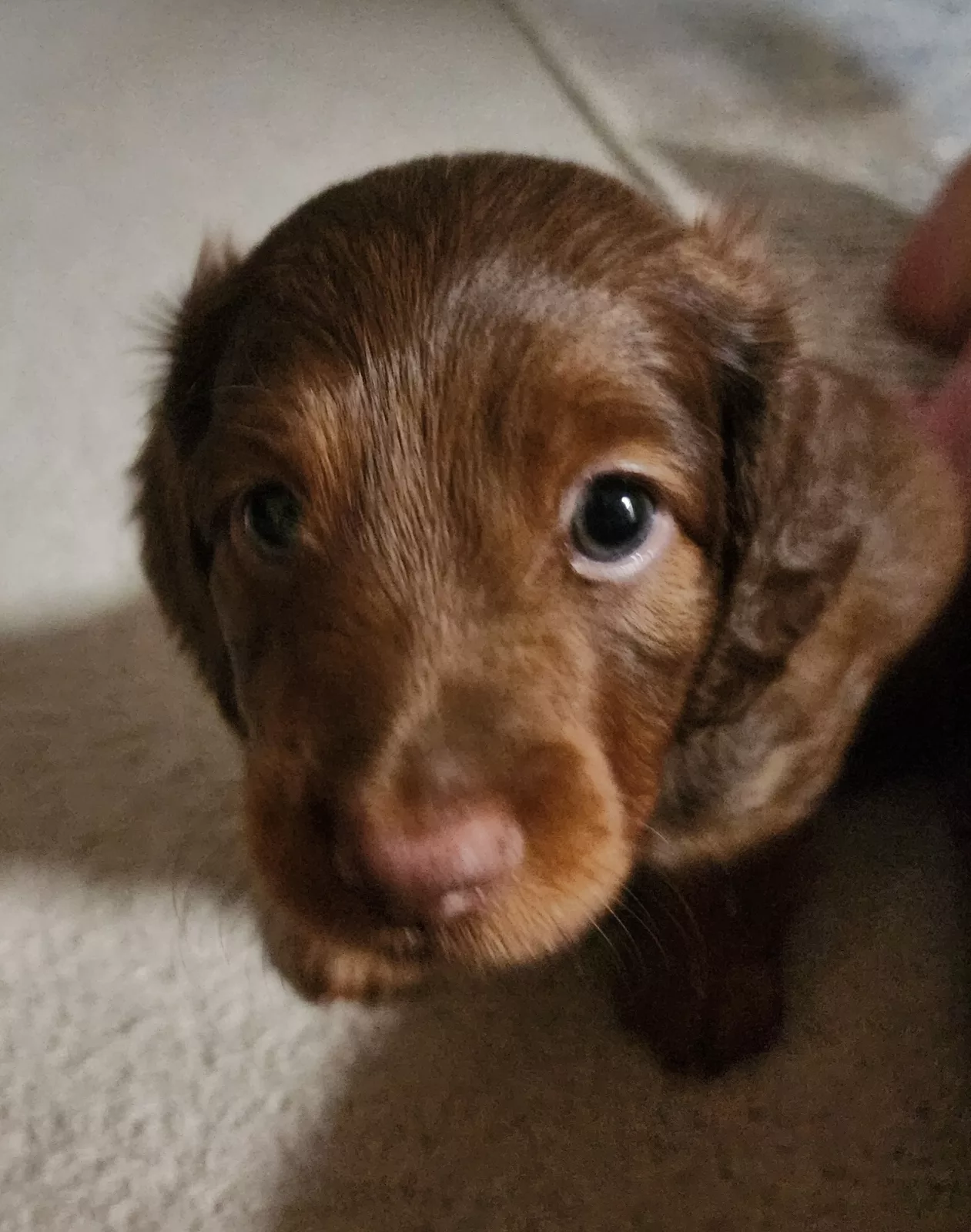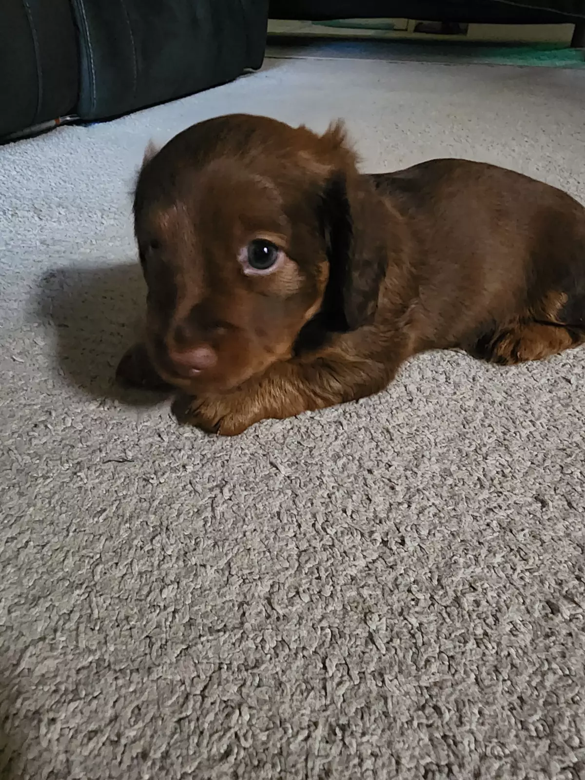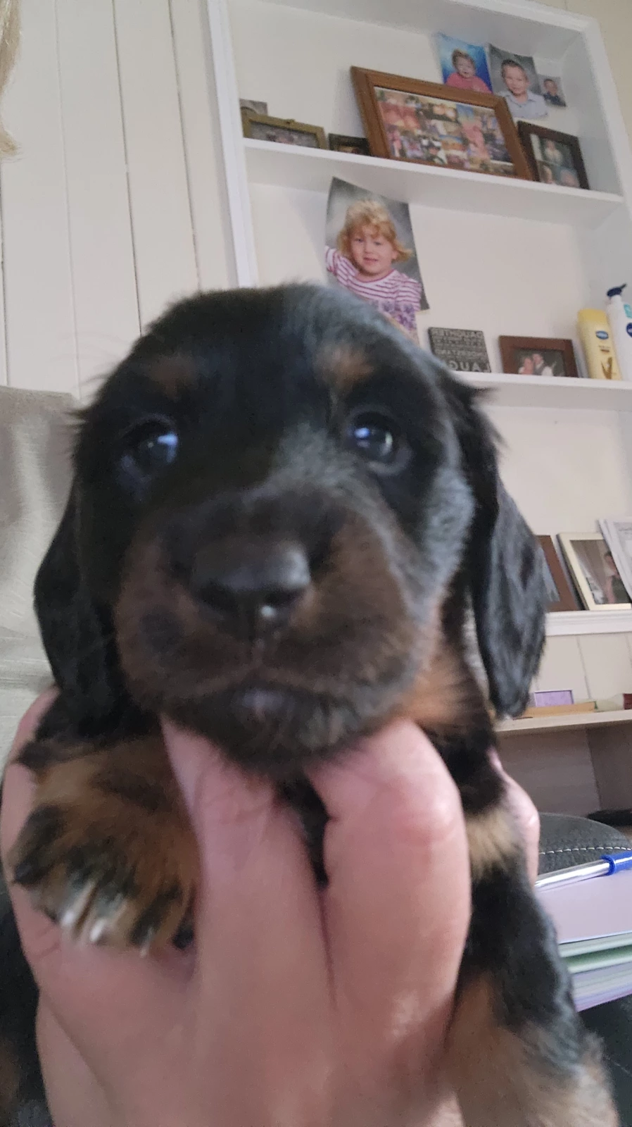 We have three gorgeous longhaired Dachshund puppies ready soon: 2 chocolate males with a striking red tinge and 1 sweet female in classic black and tan.