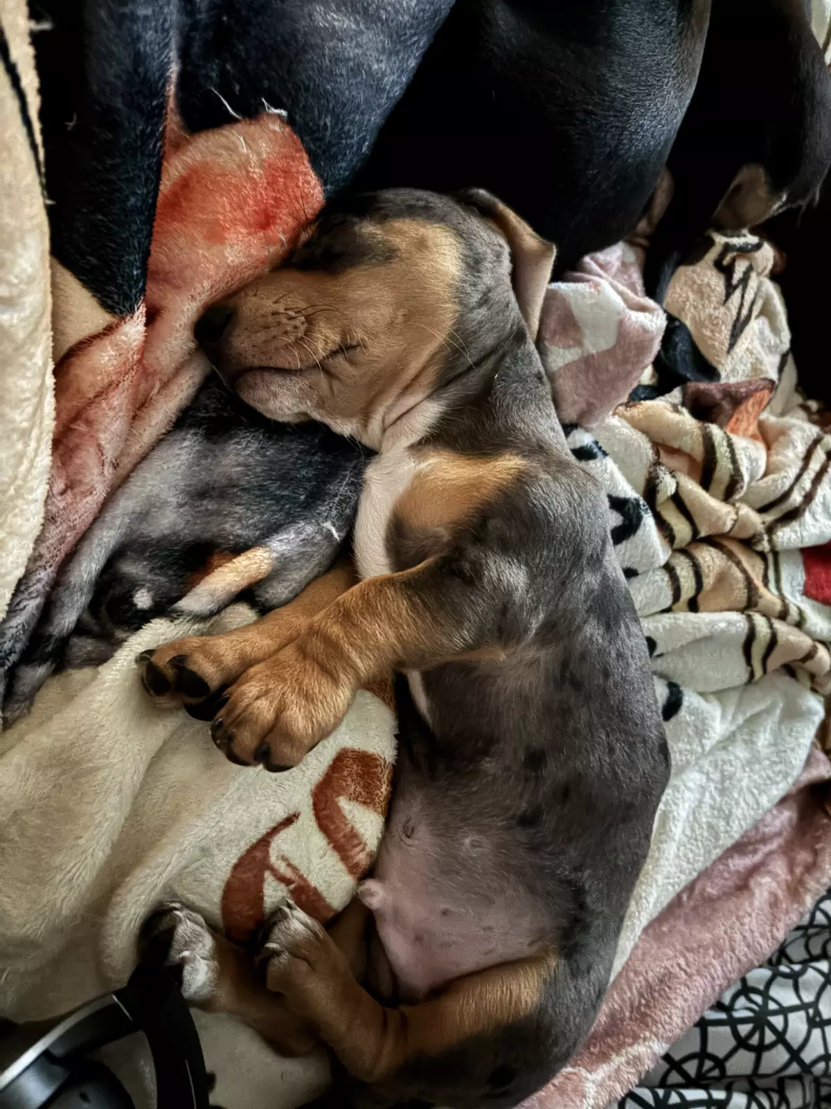 We have 2 black males and 1 rare male dapple puppy. They have been socialised at an early age and are friendly and sweet pups.