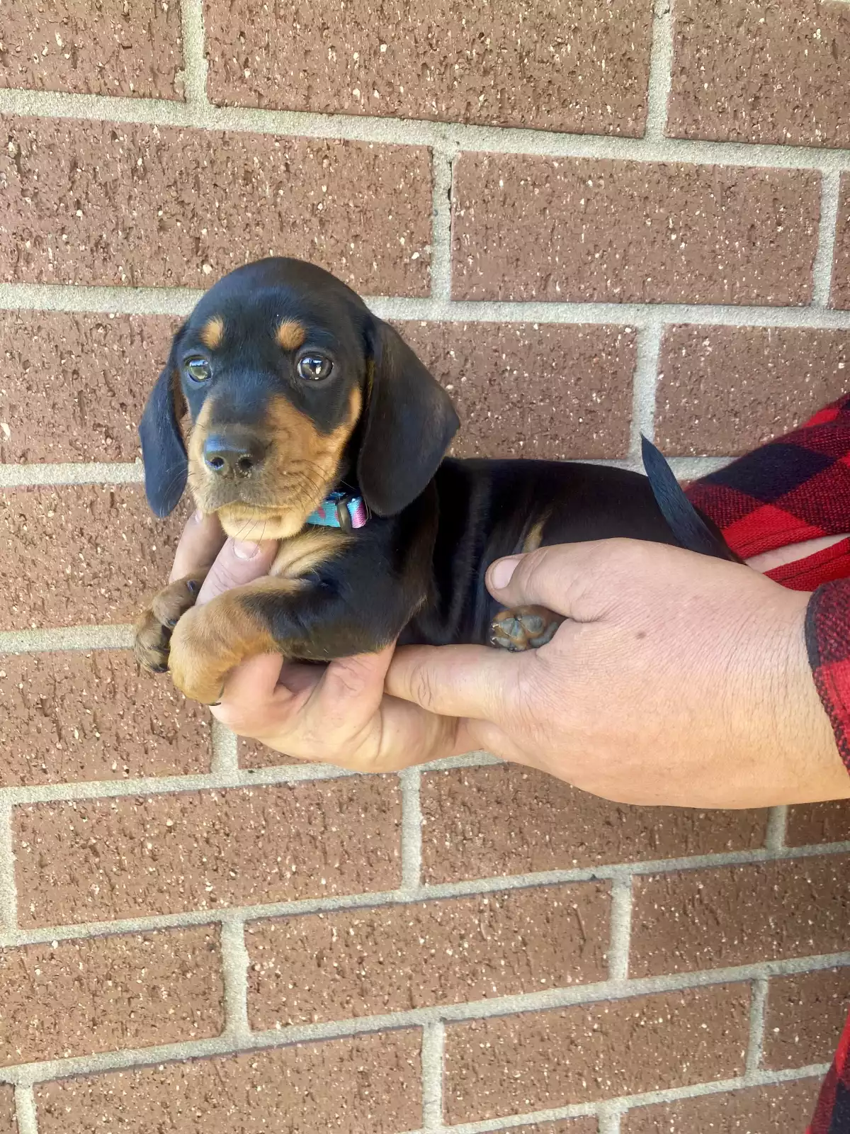 We have 2 black and tan female Miniature Dachshund Puppies 🩷