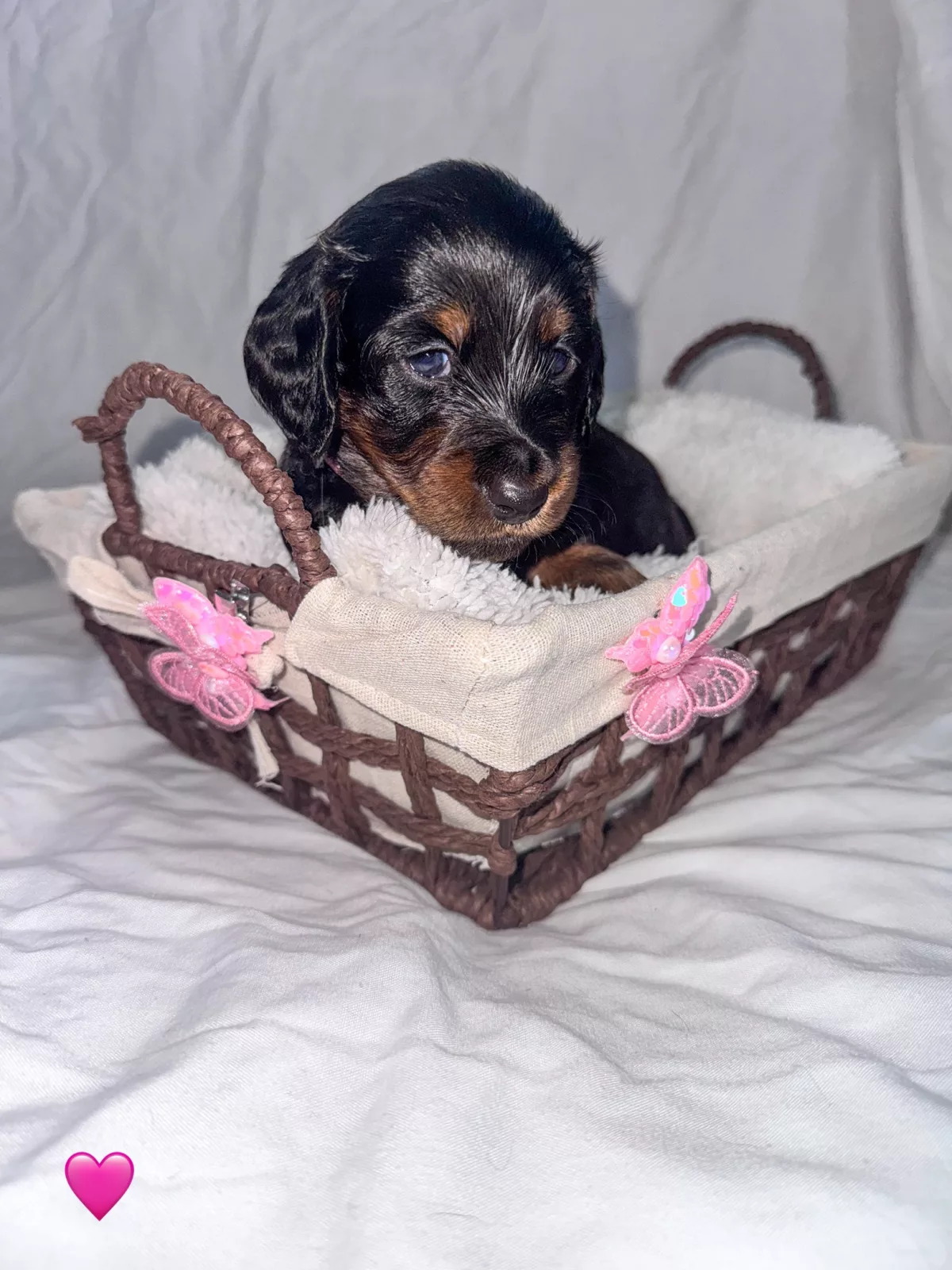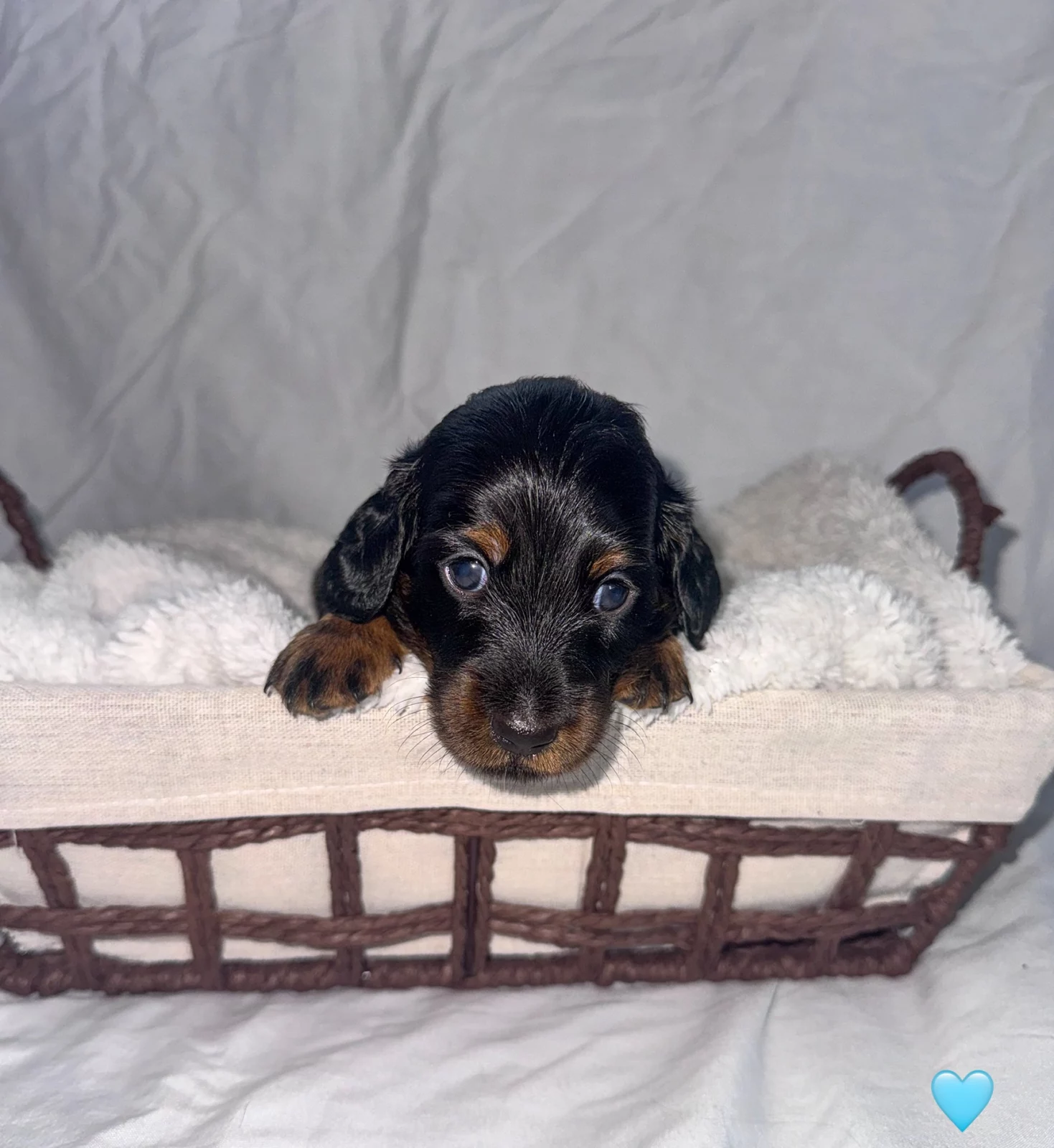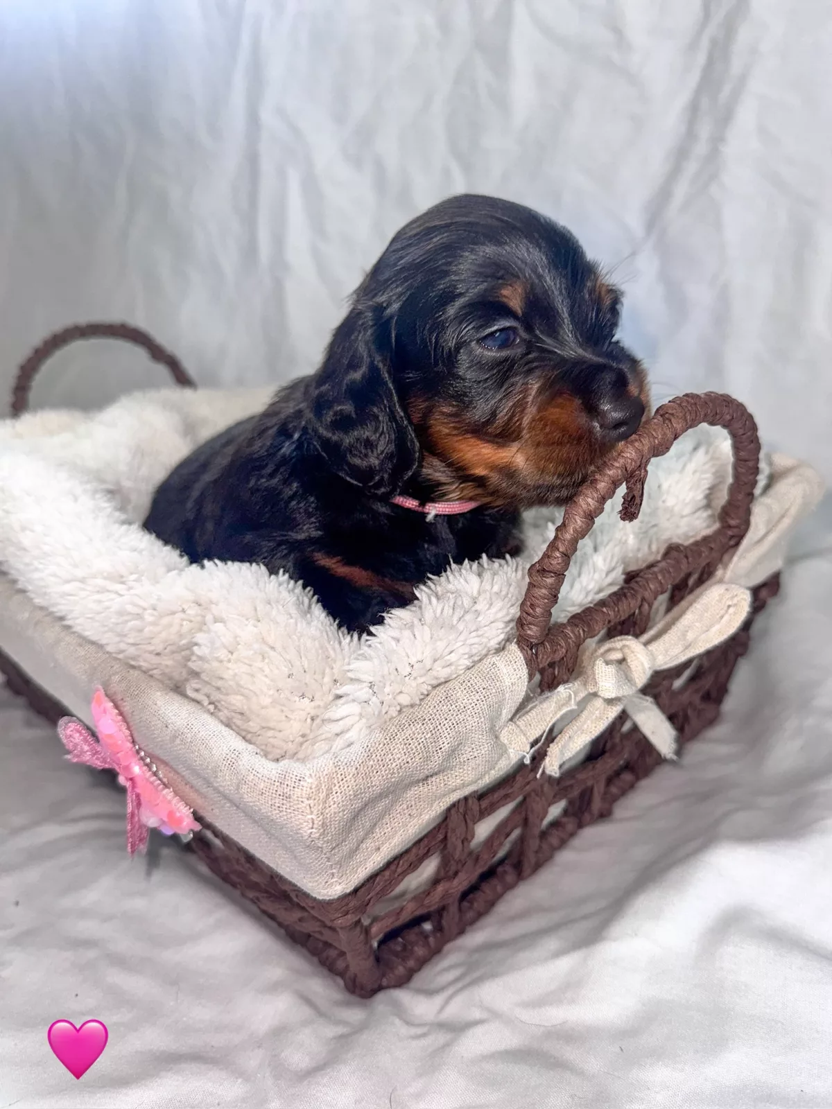 We have two boys & 1 girl available, born on the 27th of February 2025 (will be ready at the end of April/early May for their fur-ever homes). Mum (Honey) is a long haired black & tan miniature & Dad (Cash) is a short haired Black & tan small standard.