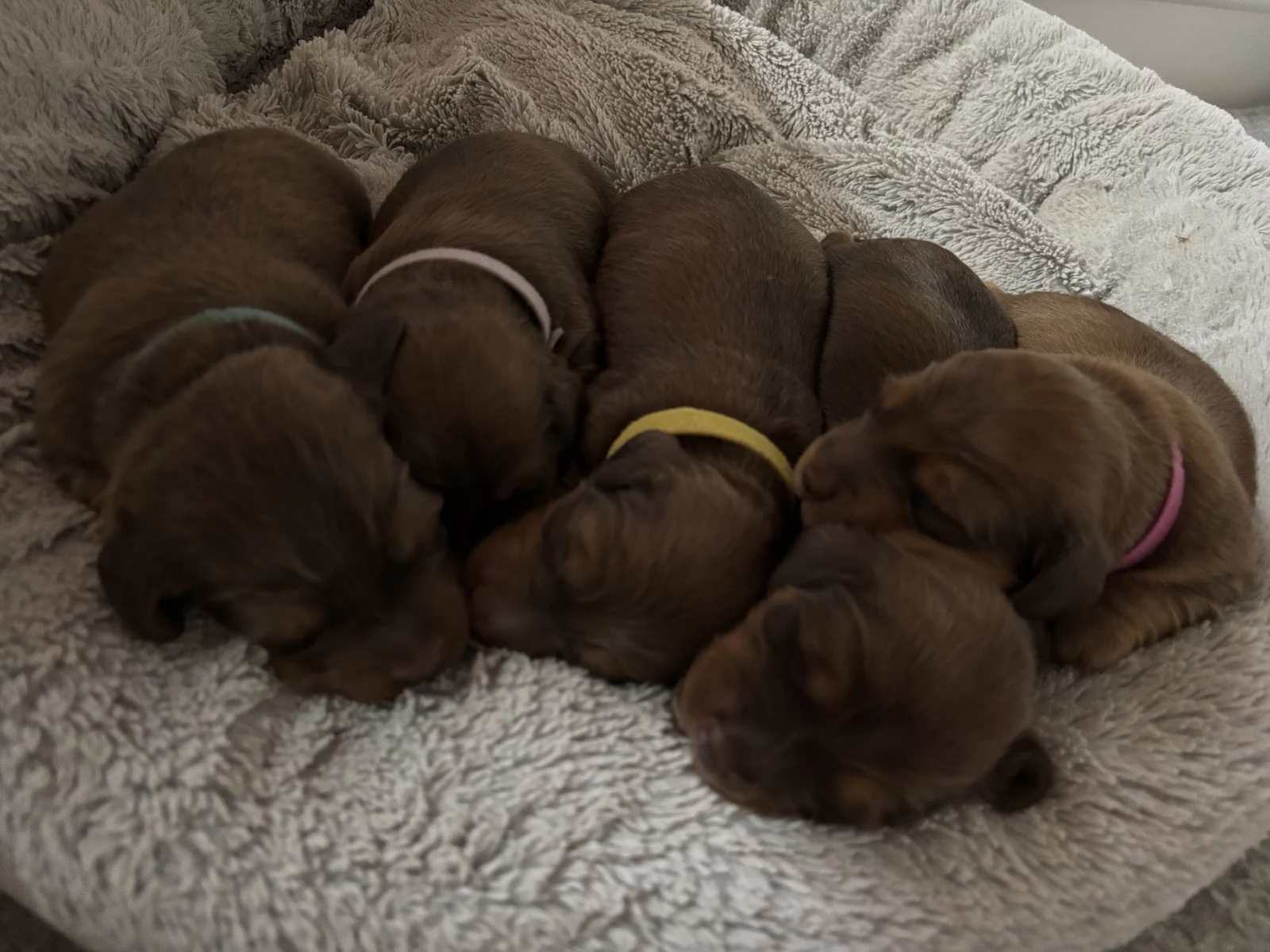 Miniature long haired Dachshunds. 4 girls available for new homes from 27th August. Happy healthy pups raised in a family environment.
