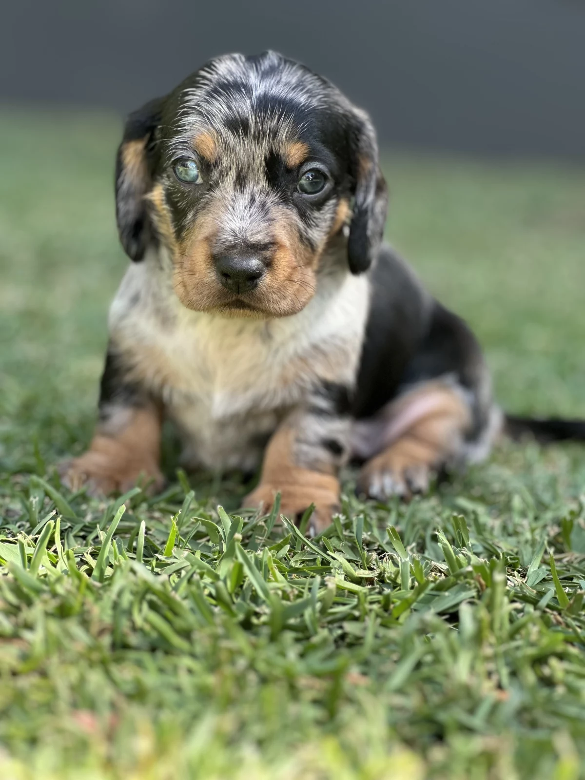 1 x Dapple black & silver boy that we call TOBY - very playful. He loves to play with his sister. He also has a calm nature but more adventurous. He sleeps well in the crate and has beautiful colouring!