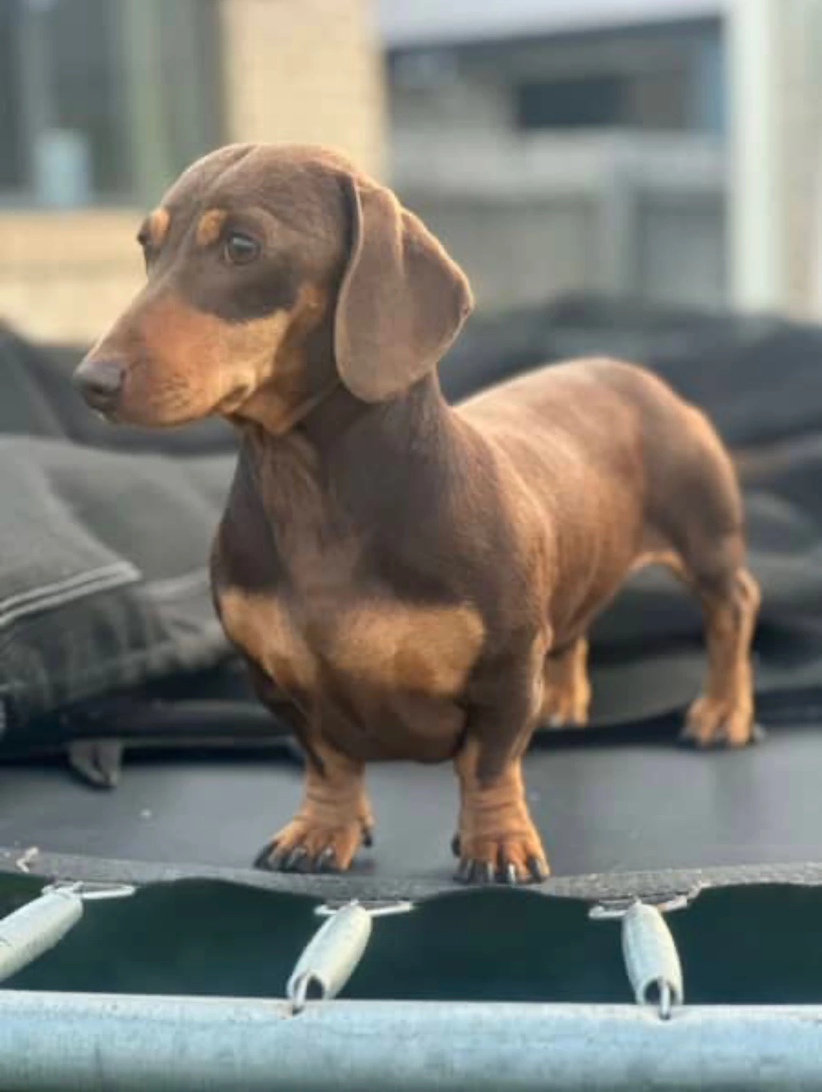 Tank is a handsome short haired chocolate and tan mini dachshund male looking for a forever home. Is the ultimate lap hogger. We are strictly looking for a new forever family that has either people home or other playful dog/s already in their family as he does sometimes suffer from separation anxiety. He is such a loving, healthy boy who is well socialised with a great personality.