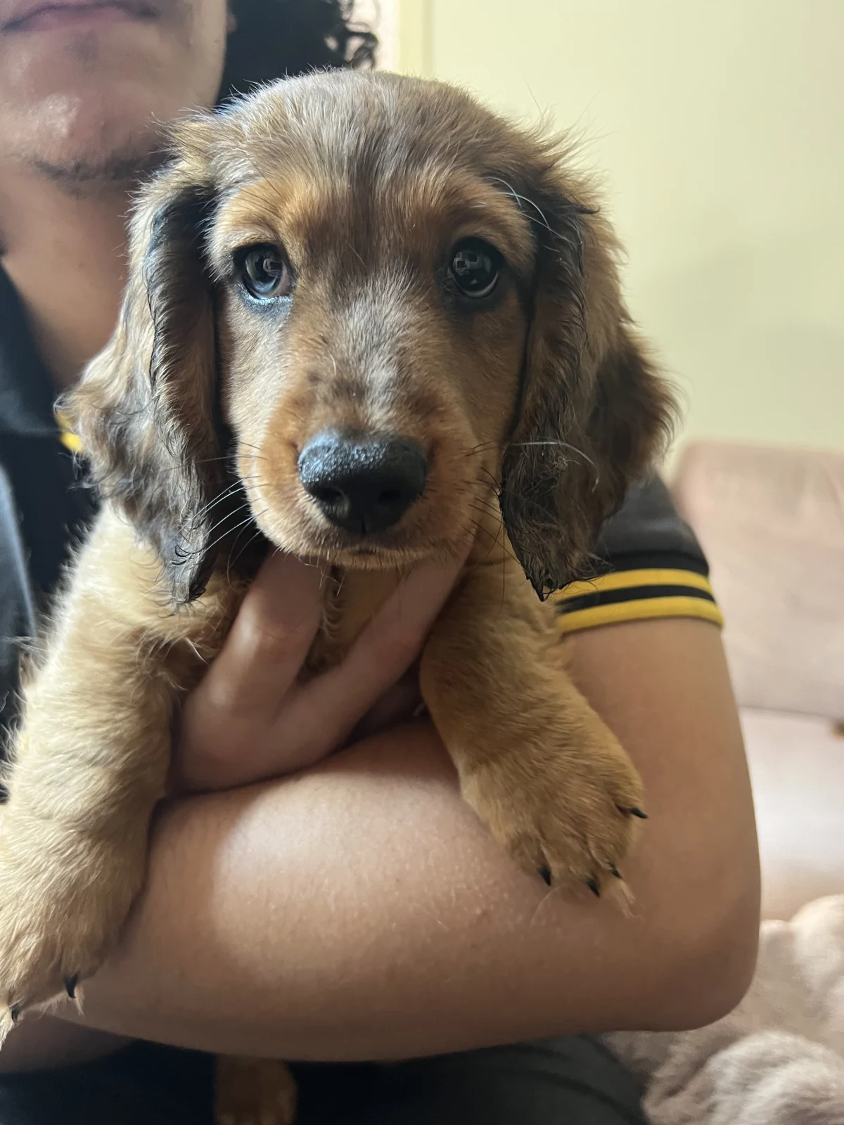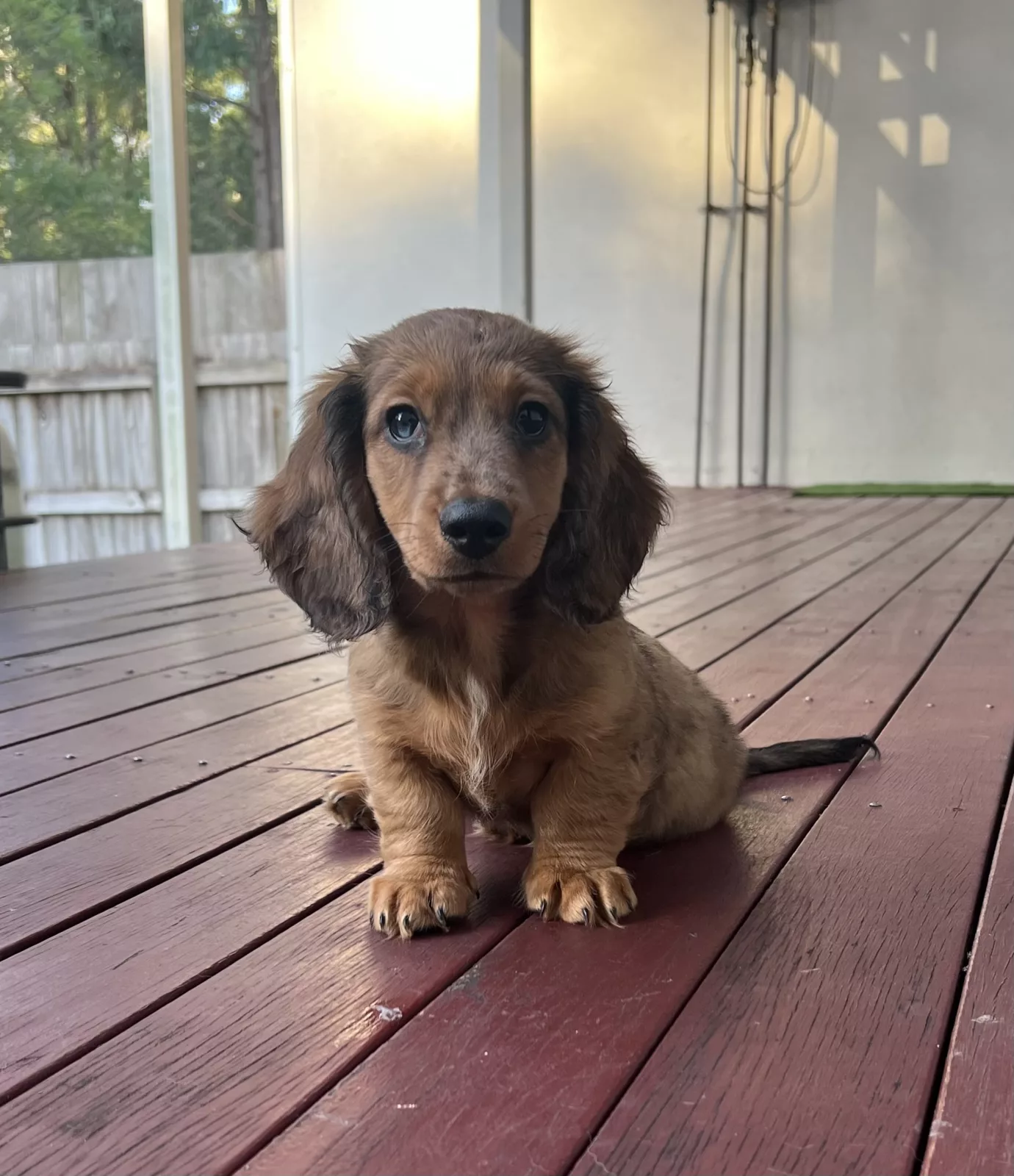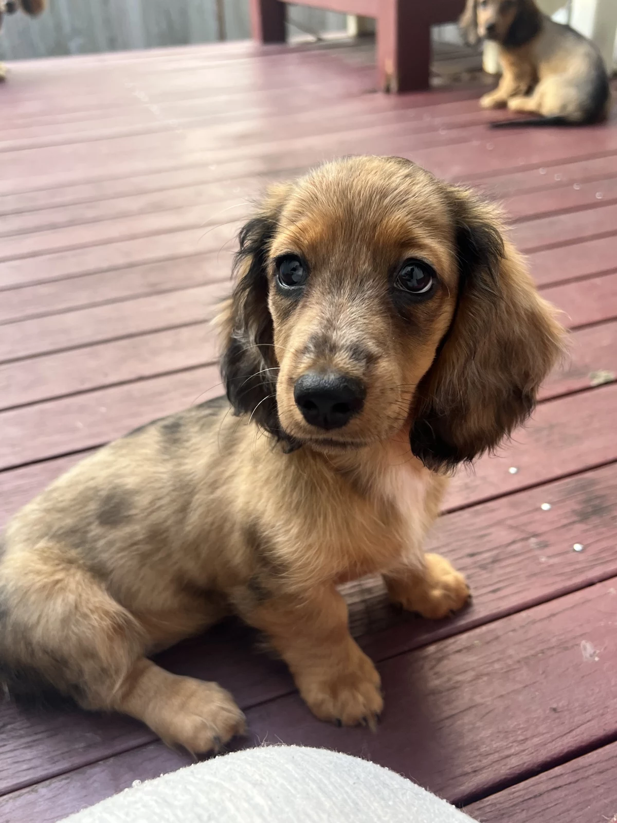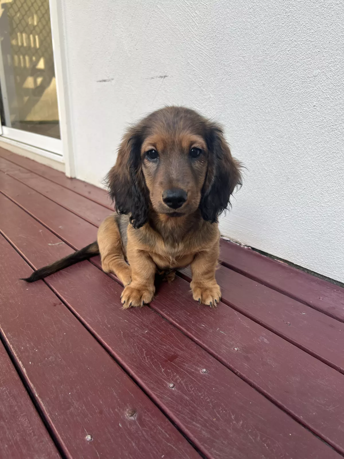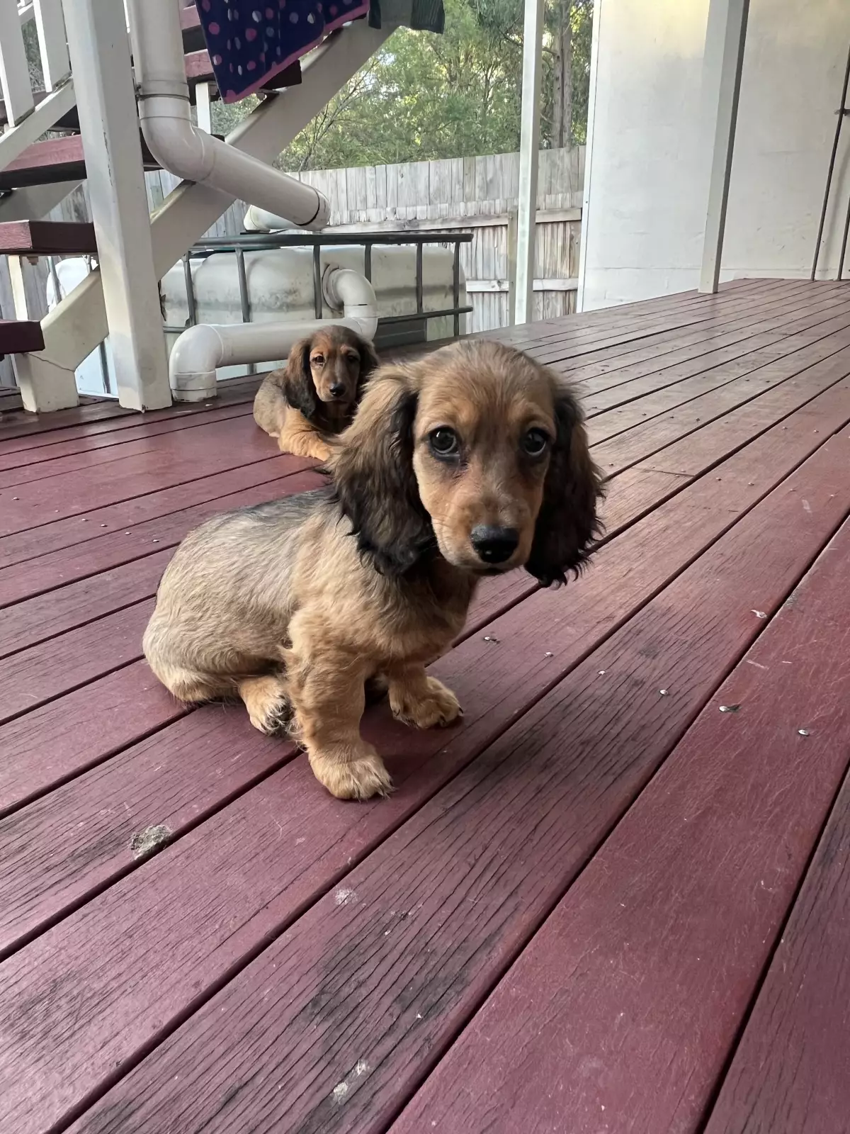 i have a beautiful litter of purebred miniature longhaired dachshunds for sale! there are three girls and two boys available, born on the 30th of december 2024 (will be ready beginning of march for their fur-ever homes). mum is a shaded red coat and dad is a silver dapple (mum and dad are last two pictures) both parents have the most loving nature ever and have been perfect family dogs - they LOVE to cuddle all day and get belly rubs so if pups are anything like their parents you will be lucky to have them as an addition to your family 💖