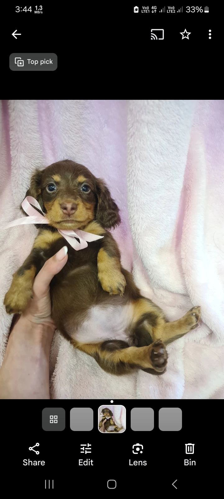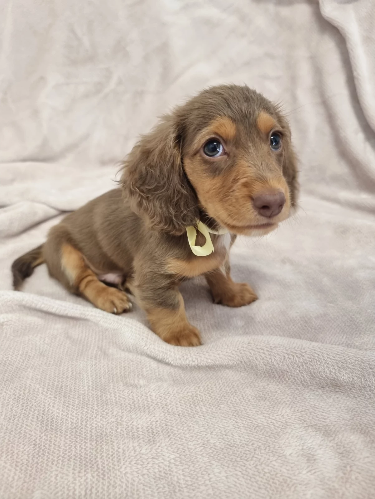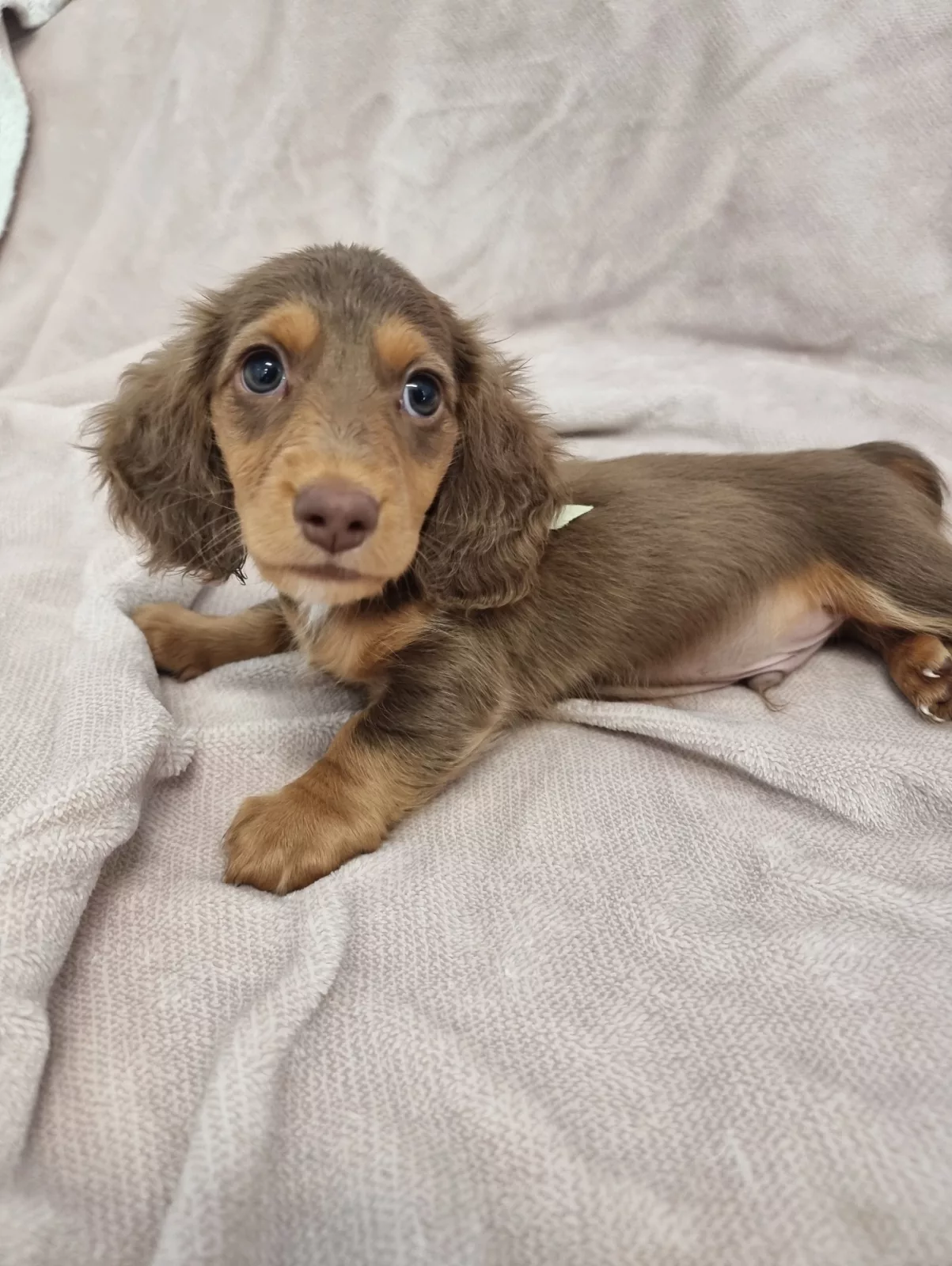 Purebred Long-Haired Chocolate & Cream Mini Dachshunds (Pie-Bald Gene)