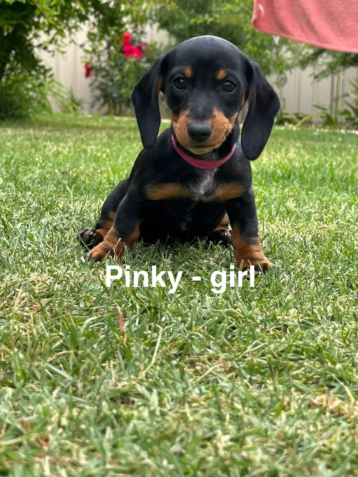 Pinky - girl - 900164002311153 - black and tan coloured with white on her chest - $1800
