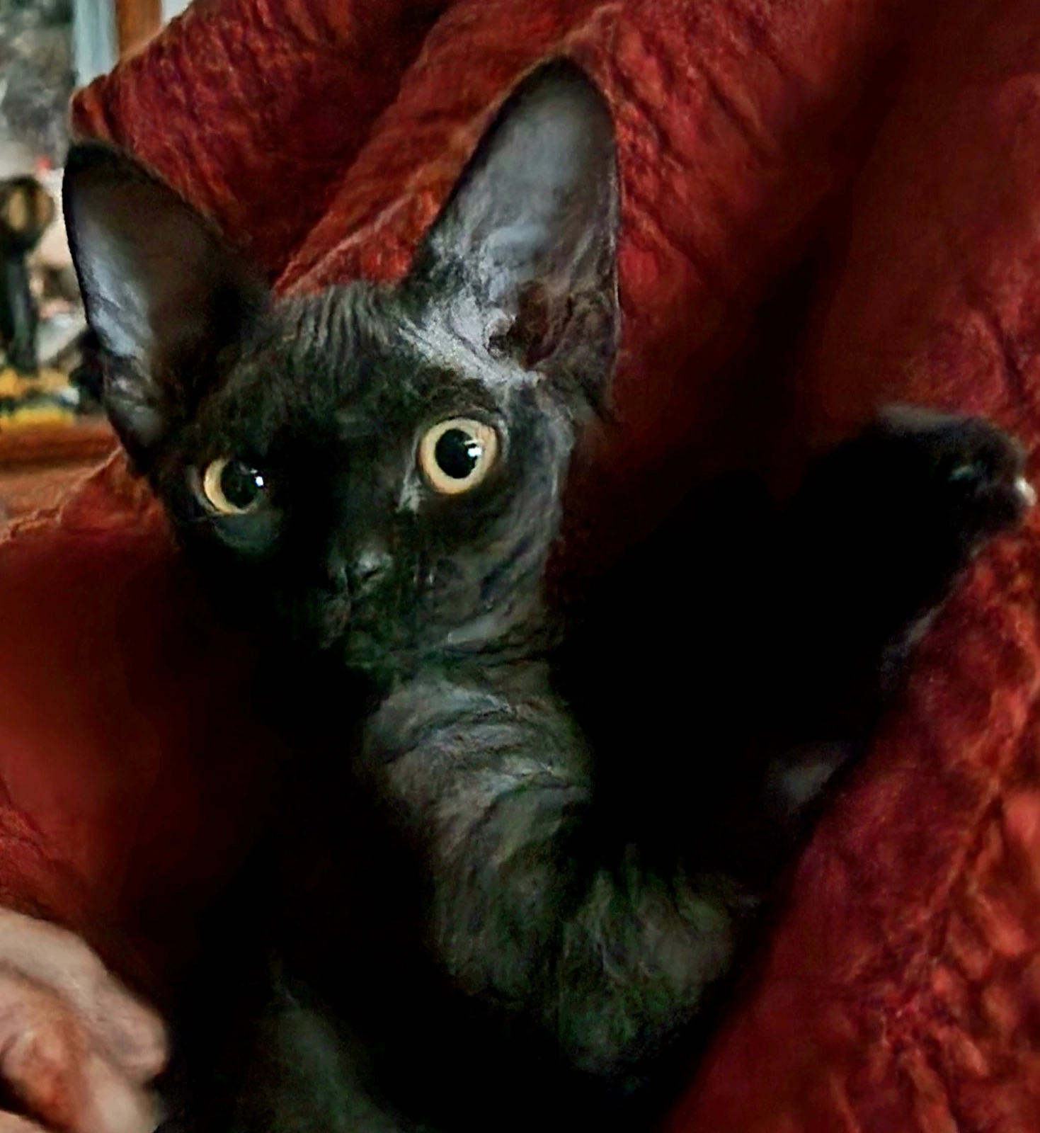 Beautiful Devon Rex kitten ready for her new home now. Zelda is a sweet, playful little girl with a very affectionate and cuddly nature, always seeking attention and happily snuggling under the blanket. She has been raised in a loving environment and is well-socialised, making her a wonderful companion.