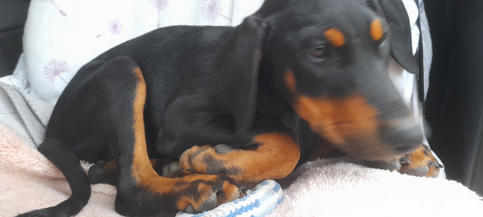 We have a gorgeous purebred female Dobermann pup looking for her forever home.