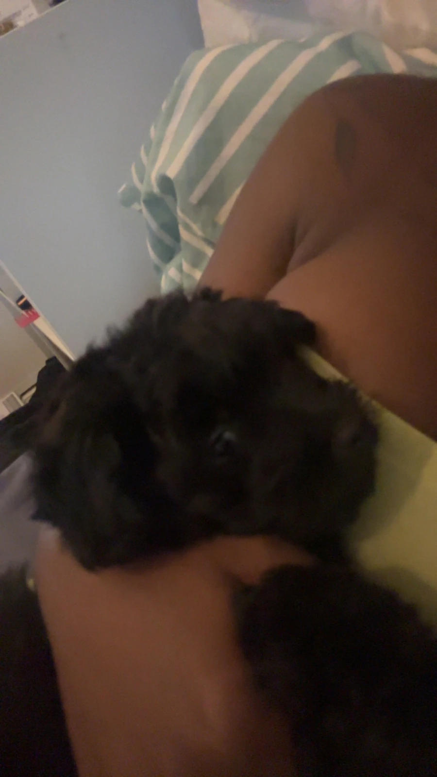 She is used to daily 30 minute walks although we do hold her from time to time. Very affectionate and loves to cuddle.
