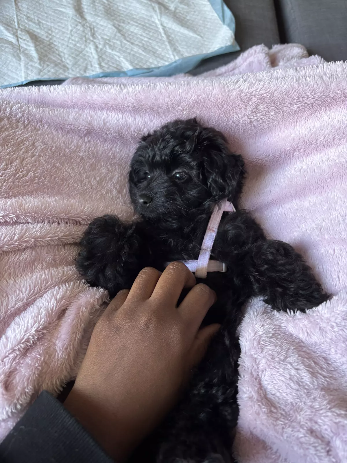 She has been microchipped and is vaccinated up to date. She has received monthly flea treatment.