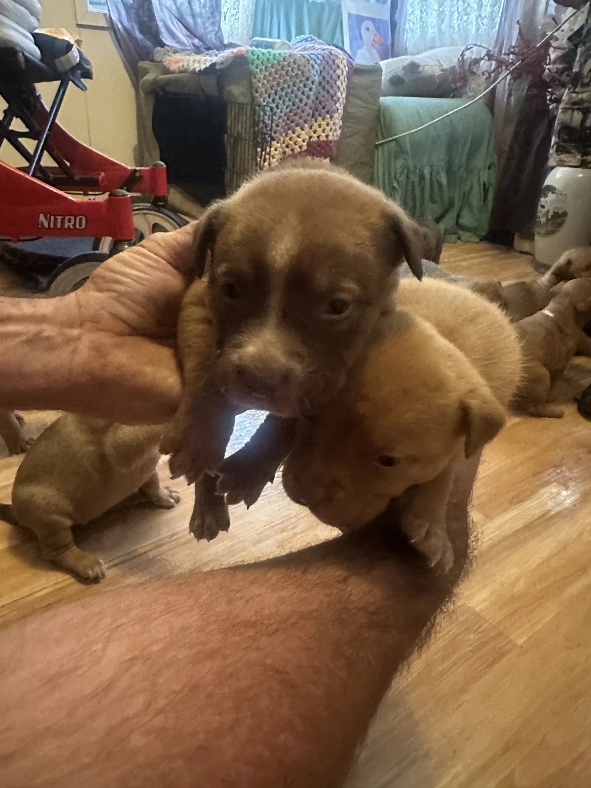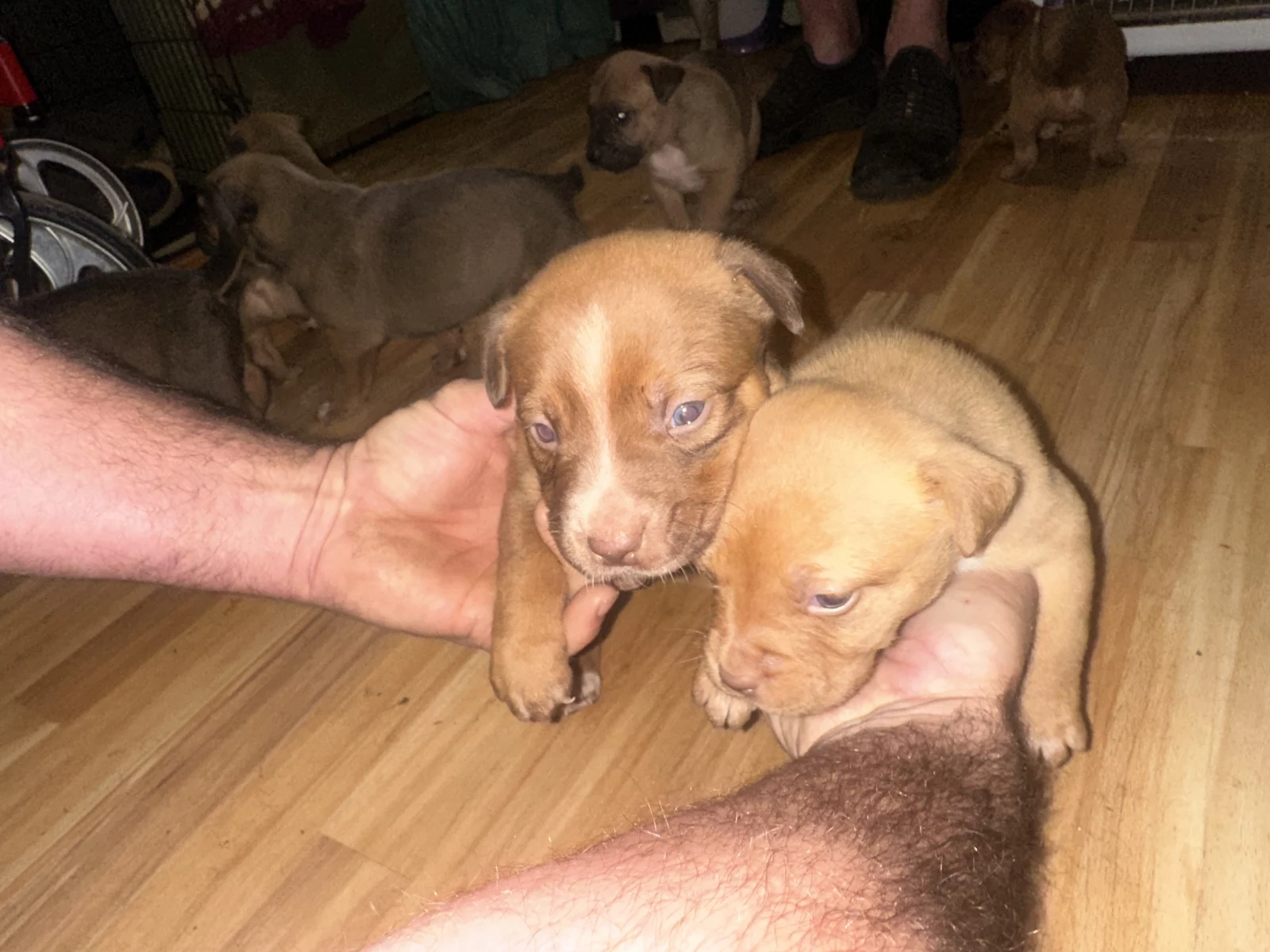 Prepare yourself for an overwhelming dose of cuteness! These adorable, roly-poly puppies are eagerly seeking their forever cuddle companions. x5 girls x7 boys Their mother is a purebred red-nosed pit bull with a heart of gold. These puppies are happy and healthy, and we can arrange for their vaccinations at an additional cost.