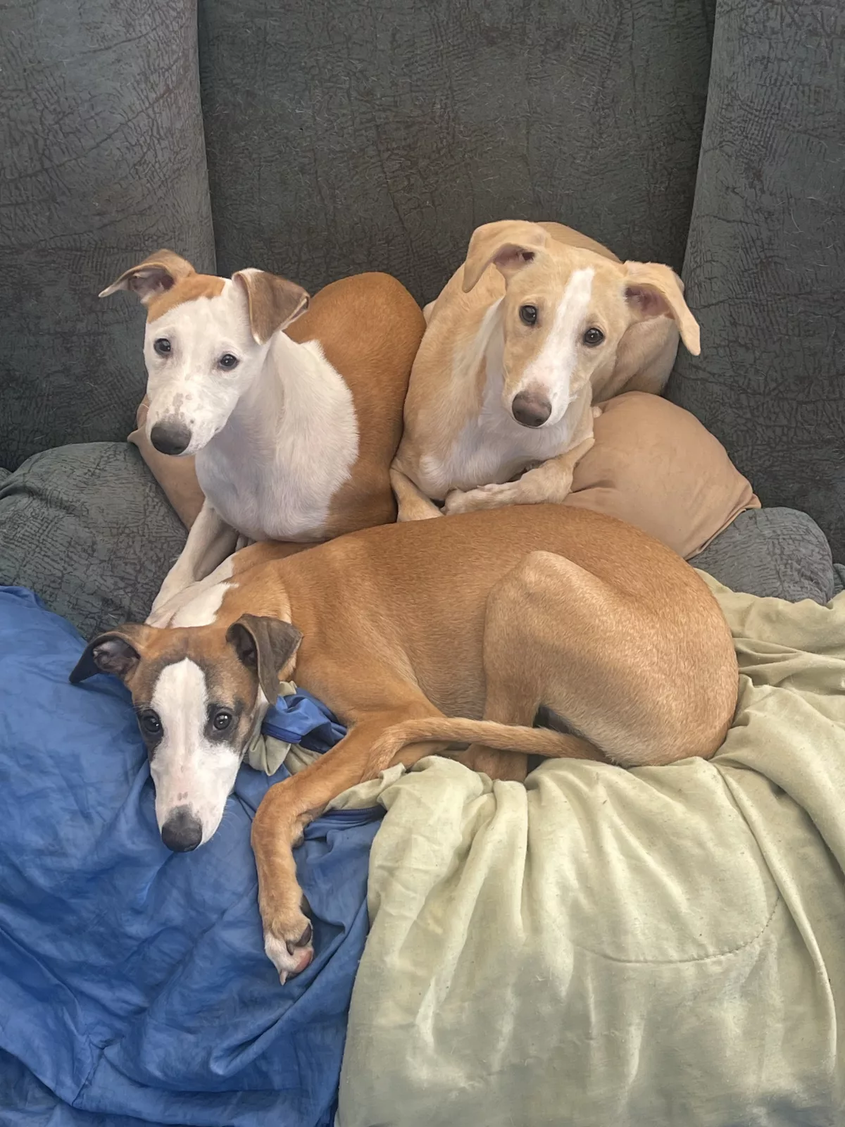 Dogs have access to: warm bedding, water at all times, ample space to exercise, natural light