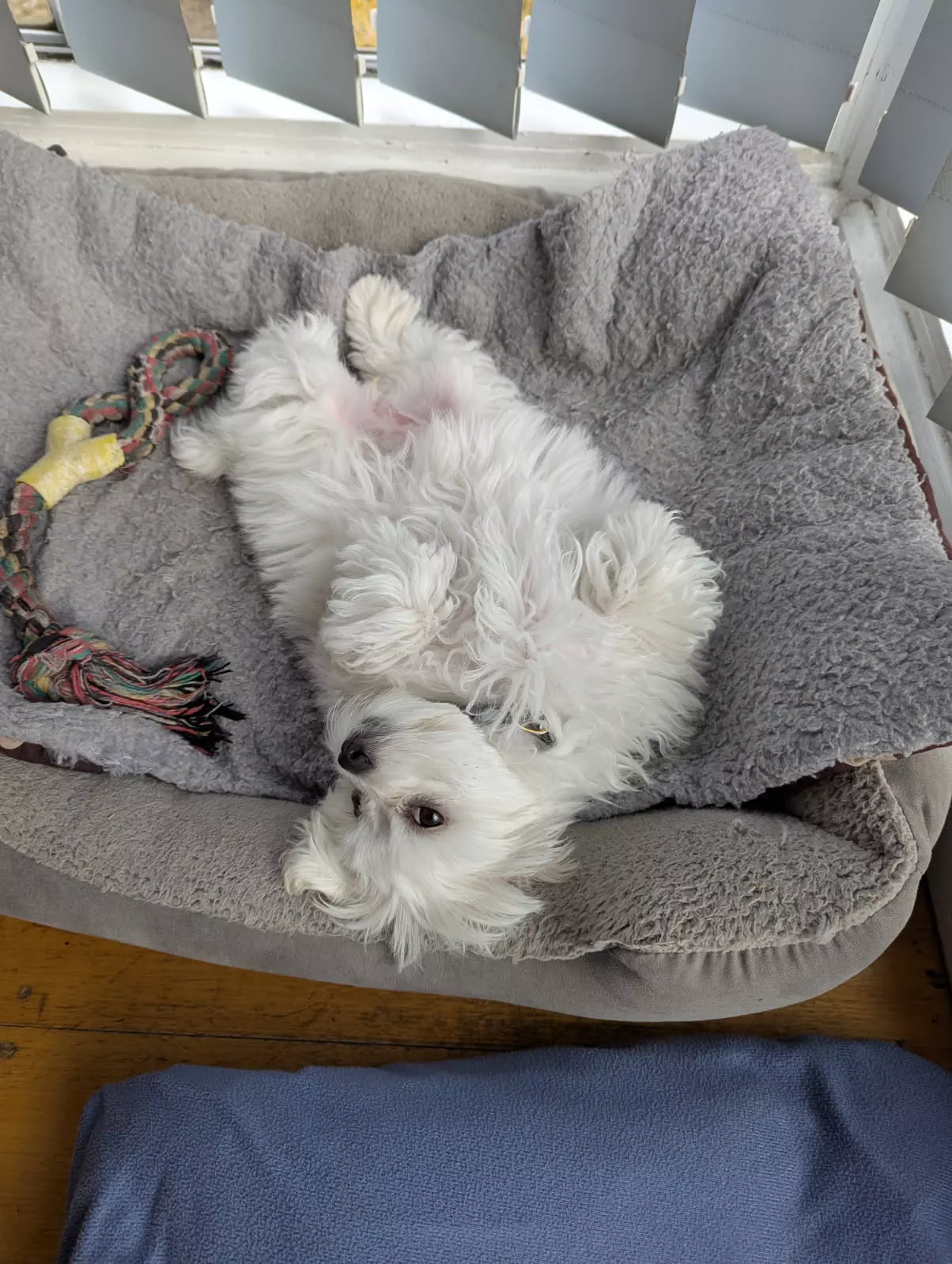 Dogs have access to: warm bedding, water at all times, ample space to exercise, natural light