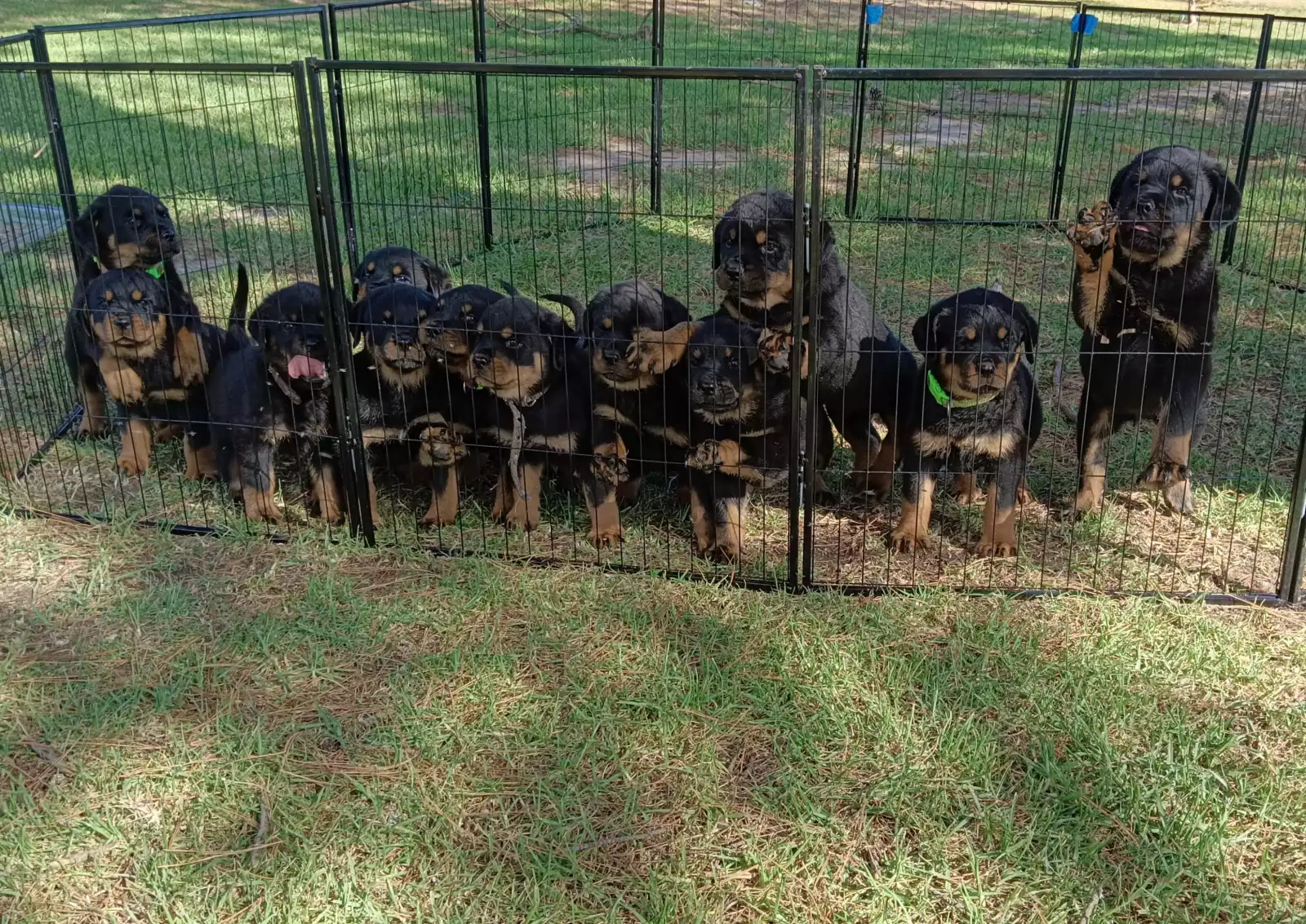 Rottweiler puppies 7 weeks old available in 1 week. Father is massive about 64 kg, massive head, very smart, great boy. Mother is very sweet. Puppies raised around children. Very healthy great looking puppies with great head. Micro chipped and vacc. Ready on 3/01/25 full litter available.